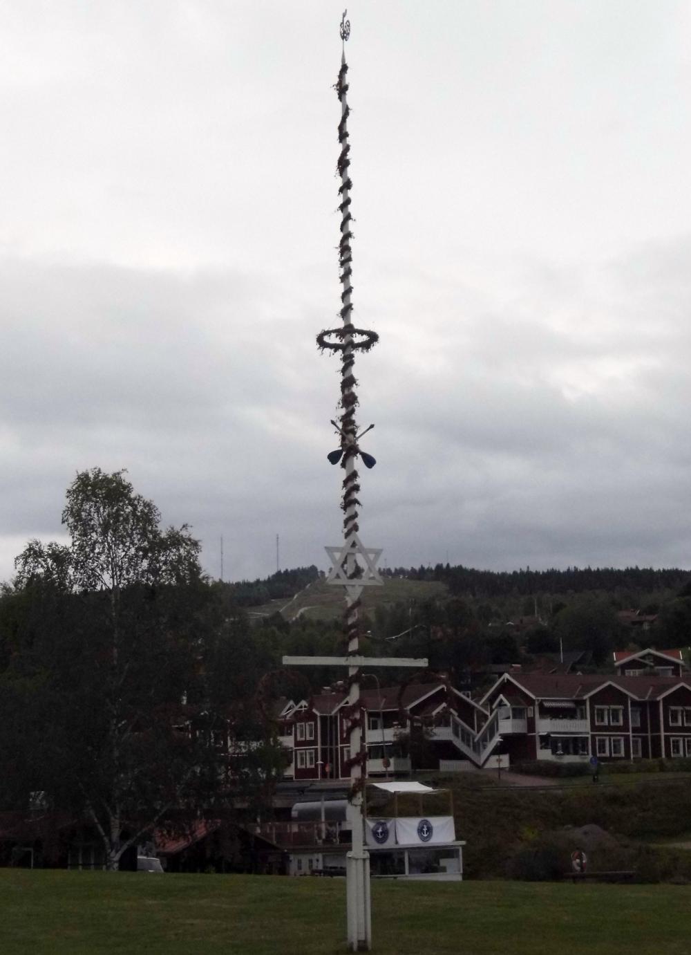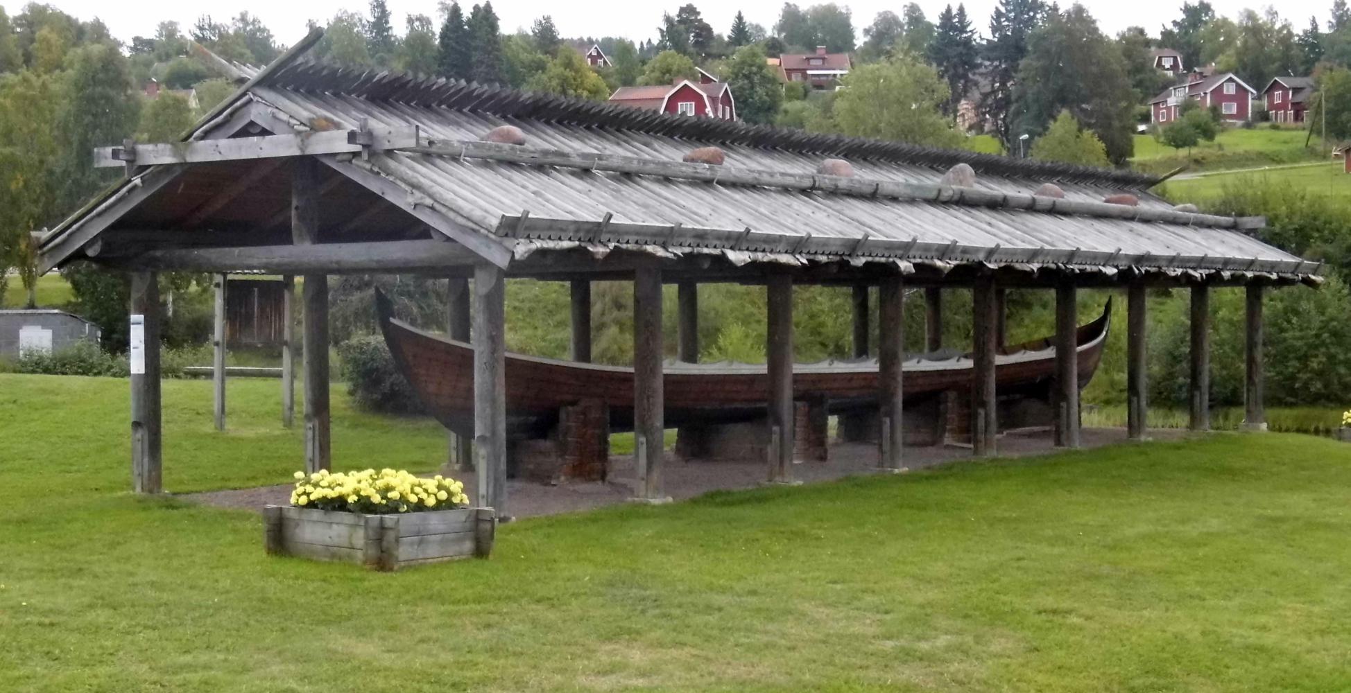 I had two refills of coffee before leaving. On the way out of town I stopped by a green which had a maypole and there was also an old long boat in a shelter, like the boats used by the Vikings. The interpretation board called these Church-boats as they were used to row to church on Sundays as well as being an important form of communication between communities around Lake Siljan before the arrival of modern transport.
