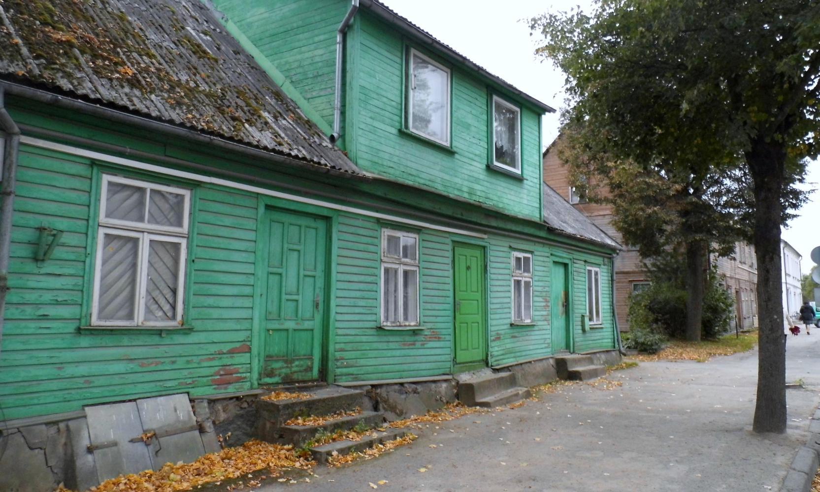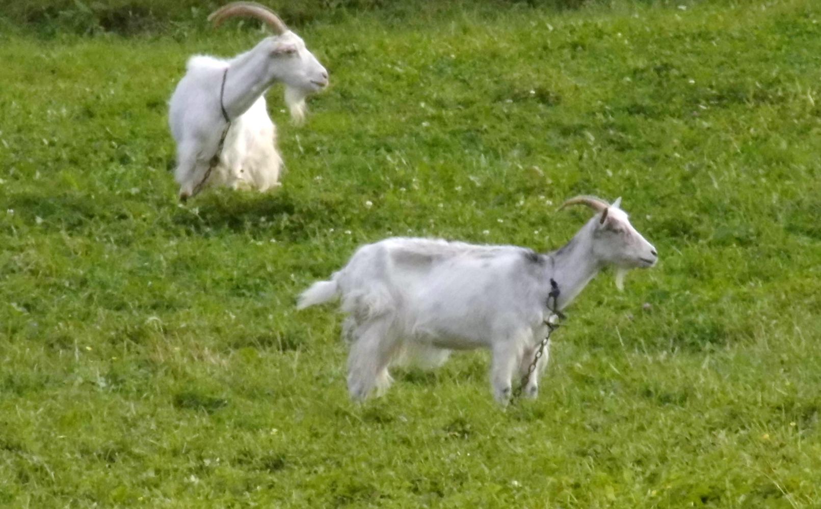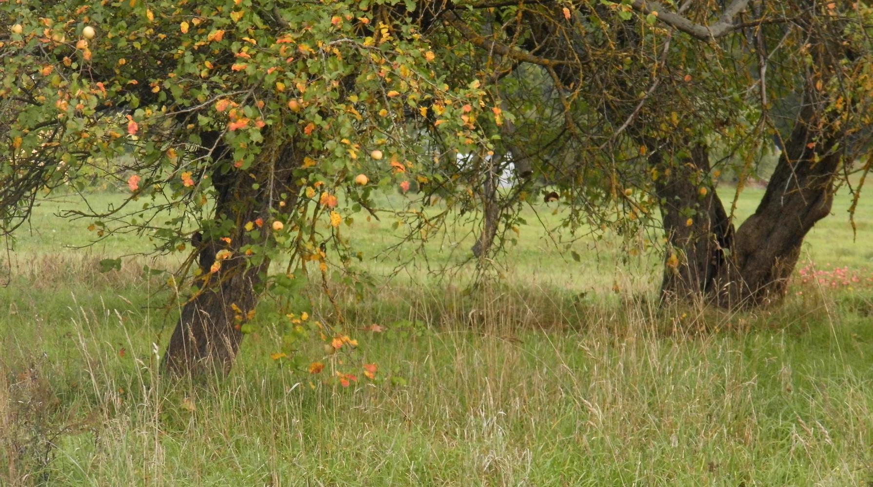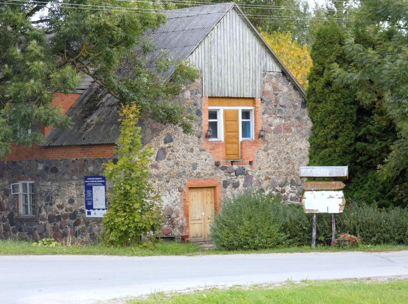 I CONTINUED ONWARDS From Barabele where I'd finished off the afternoon before, to a village which marked the border with Lithuania; a scattering of houses which were perhaps once smart, painted brightly in a shade somewhere between green and blue, but were now weatherworn and rustic. And the street through had a fork where I missed looking at the sign and consequently took the wrong fork, descending a little hill and came out of town sideways and confused as I couldn't see no sign for any place ahead; then the paved road ended to continue on rough and sandy. But I managed to see and photograph two goats in a field and an apple orchard before turning back into town; so, it wasn't all wasted time.