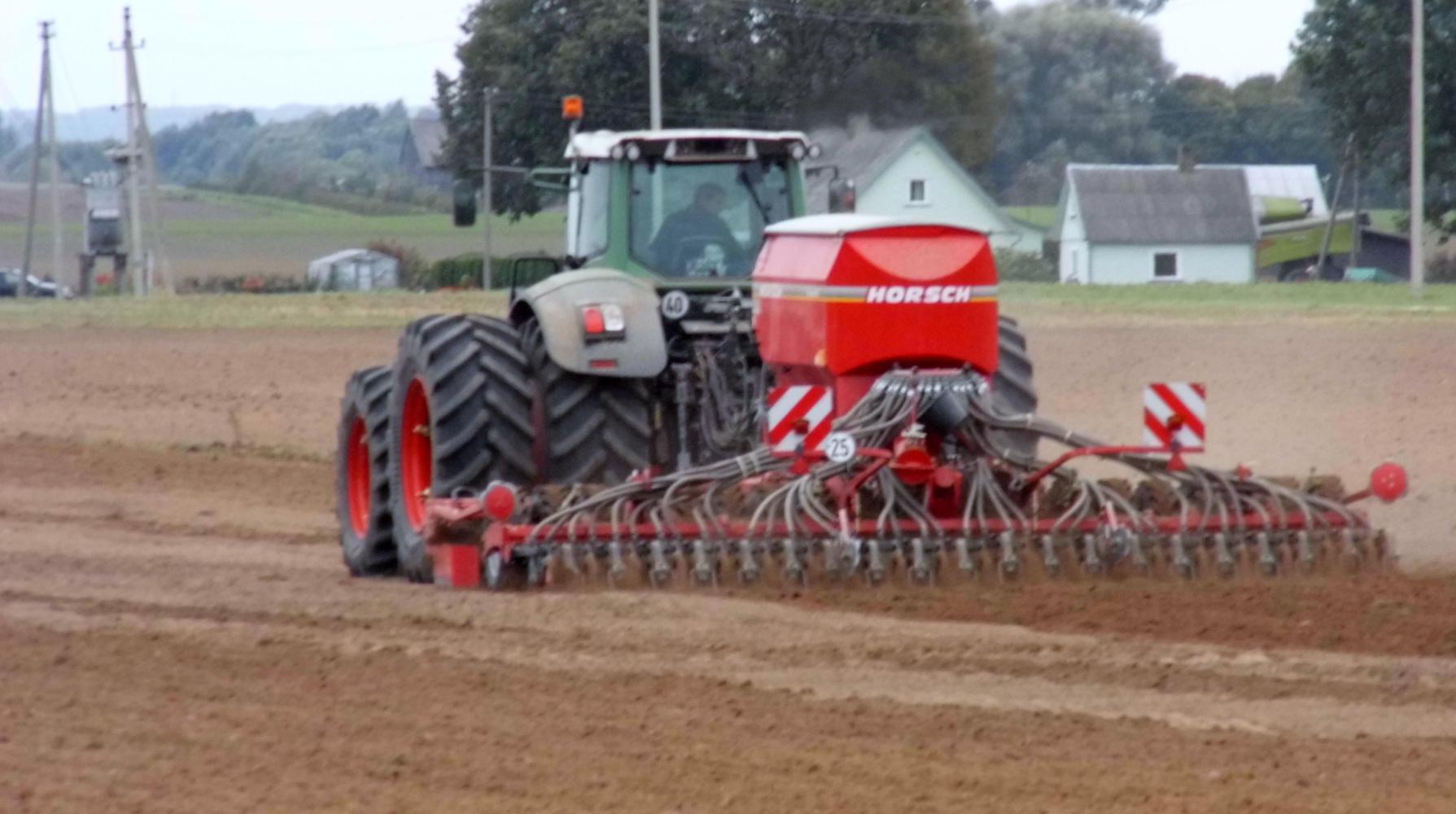 Looking ahead, there was less forest and clusters of unsightly discoloured concrete farm buildings. I then rode on against a headwind across an agricultural plain with earthy tilled fields on either side; in which, here and there, tractors moved steadily across in clouds of brown dust. The wind was southerly, so threatening dark clouds were moving in again.
