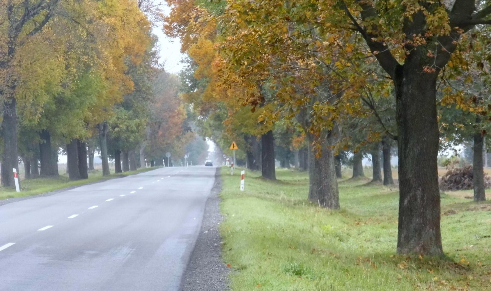 Saw a sign for a Lidl supermarket "800m" ahead, early on, on the ring-road round Radzyn Podlaski. Though it wouldn't be open until ten on Sunday morning, if at all. Overcast today, meaning there's no threat of rain which is one good thing as I ride with dull skies; though, the road is a tree-lined avenue, where the leaves have turned from green to yellows and browns, willing me to visual enjoyment.