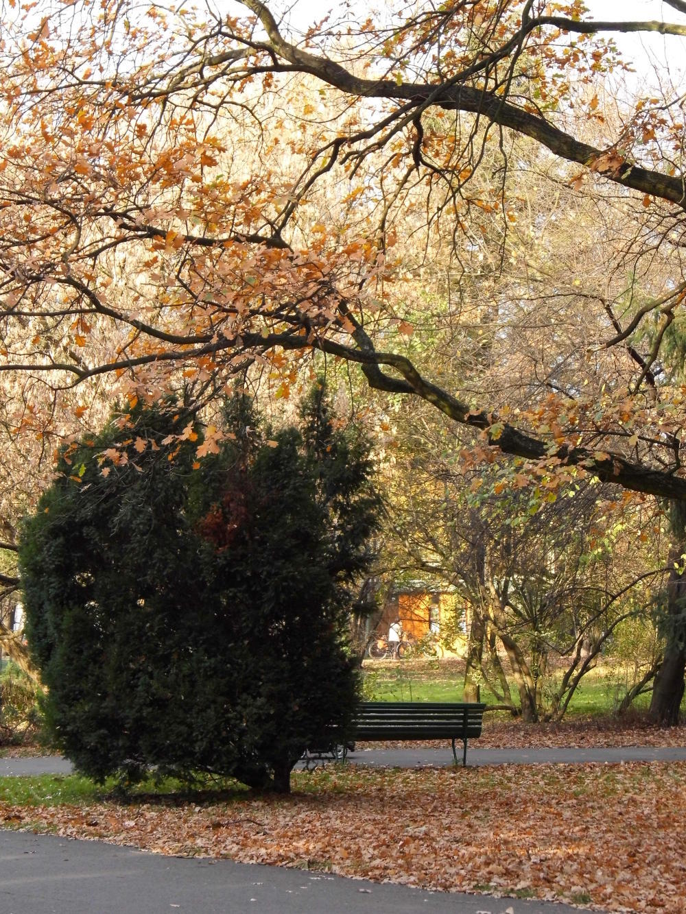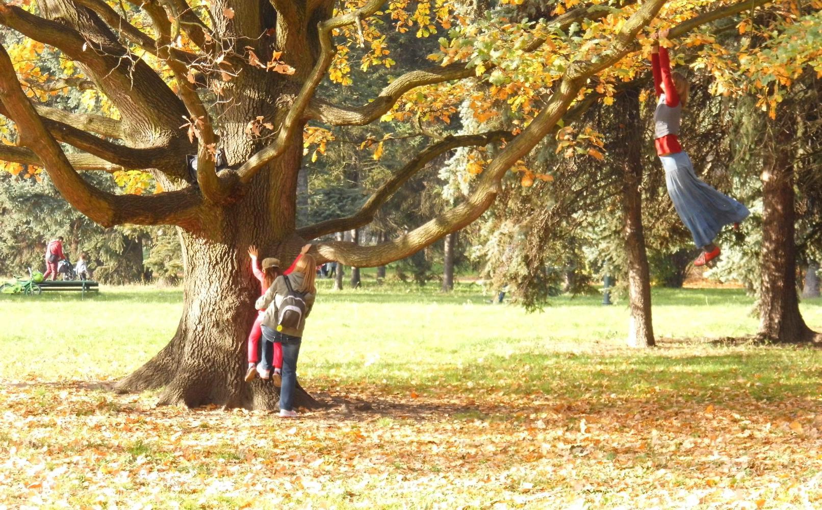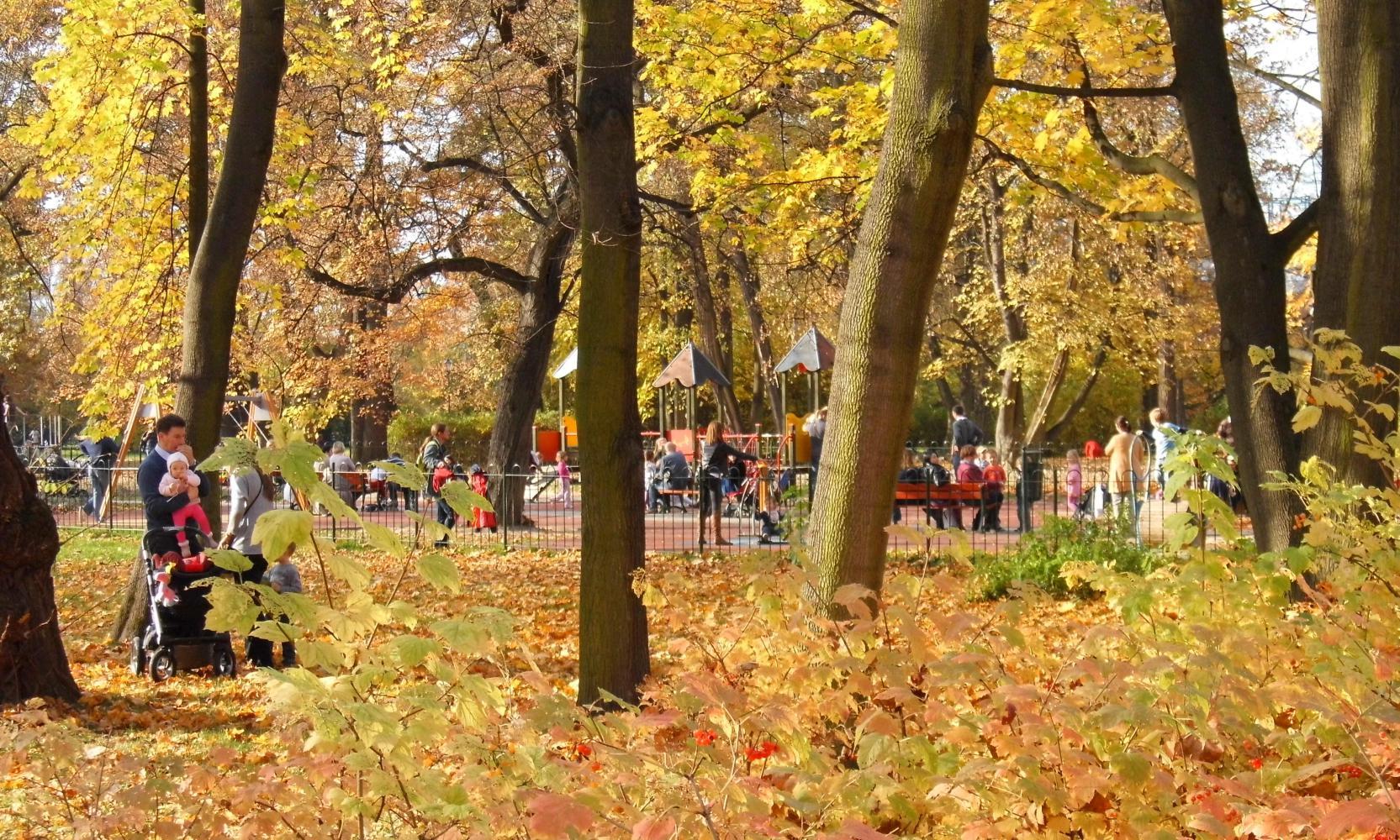 I miss the street that the market is on and soon I'm in a city park. I wish I had my camera with me, but often it is better not taking photos, instead, look and enjoy the nature; the golden leaves carpeting the ground everywhere; the tree trunks angle in elegant symmetrical patterns; the red and gold leaves that have yet to fall. There's children on the climbing frame in the playground. There are young couples walking holding hands. And there's a boy walking a tight-rope suspended between two trees.