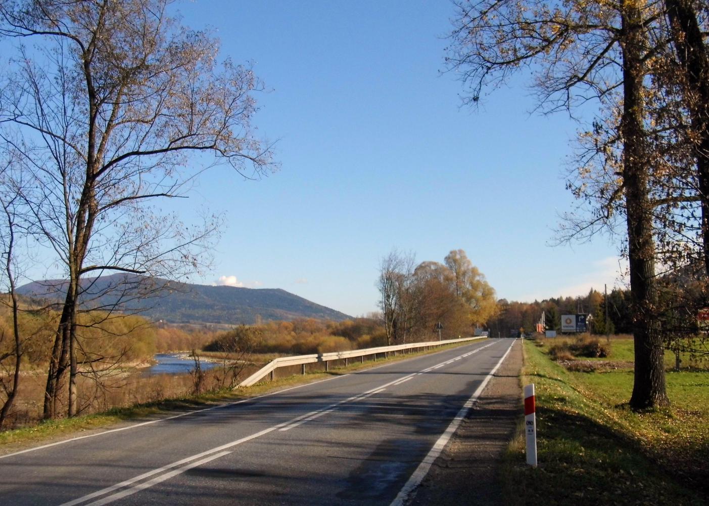 In the afternoon, I am on a secondary road numbered 968. Its a narrow single-carriageway with constant traffic, lots of trucks and the surface is badly deformed, pushed up in a big round furrow at the edge, making it hard cycling in a straight line. The green sign has Nowy Sac 55km. How can that be as it was sixty kilometres on a sign I passed about noon. Then I look at my big map for the whole of Europe, and realise the mistake. The town I should be heading for is Nowy Targ, just north of Zakopane, not Nowy Sac which is way to the east. I turn around and cycle back to a town I've just cycled through, in which, I turn left onto a narrow byroad.