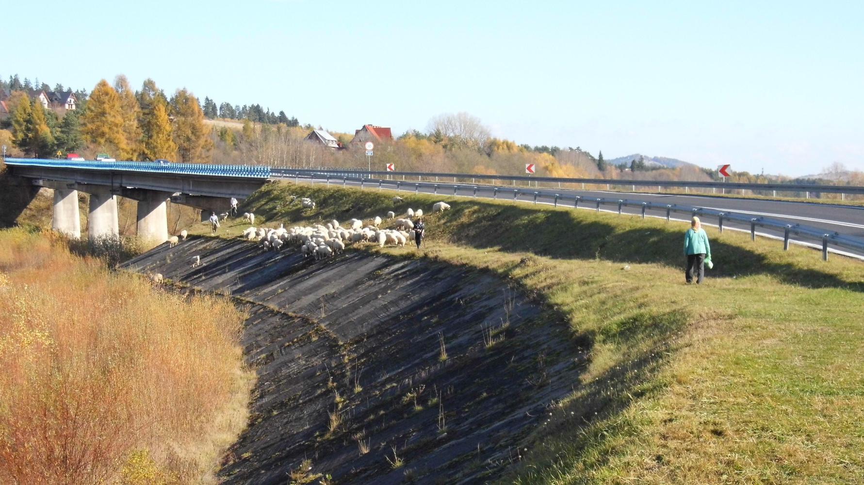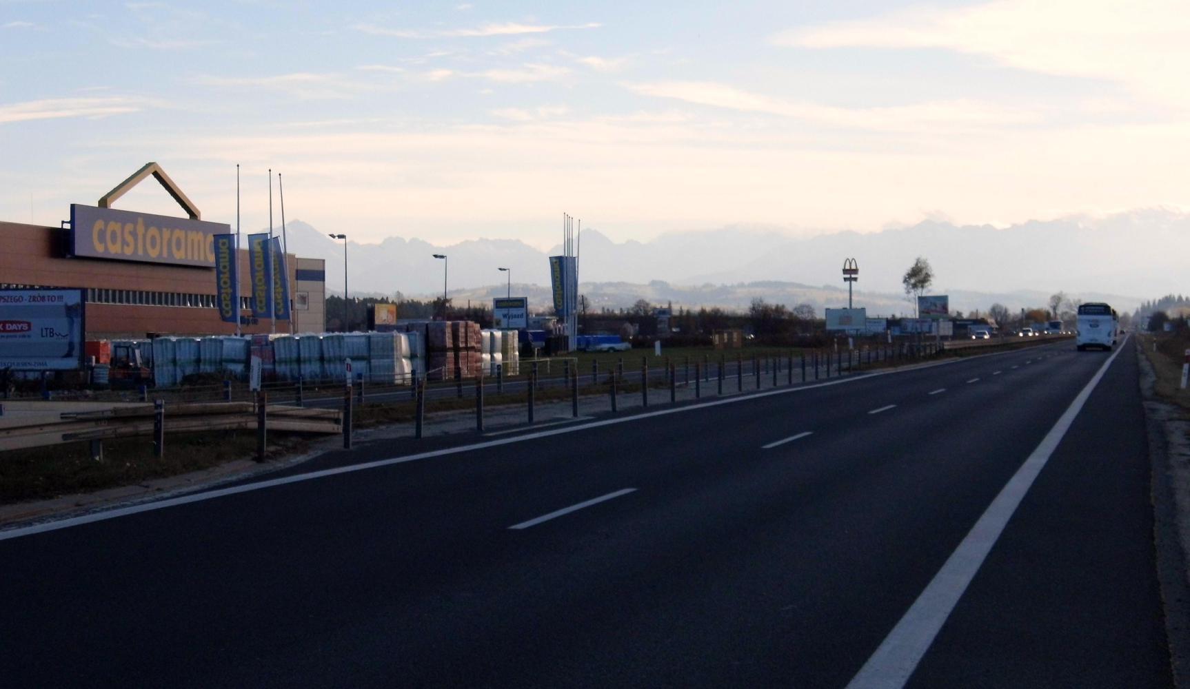 Just then as I pause, intending to ride off on the exit-slip, a red Fiat Panda stops. The woman driver sees me looking lost and beckons me to follow. I follow to the roundabout where she stops again and waits until I'm level. She speaks in Polish, but when I say "Zakopane?" and say nothing else, she speaks in broken English, saying the service road is better and listing the towns on the way to Zakopane.