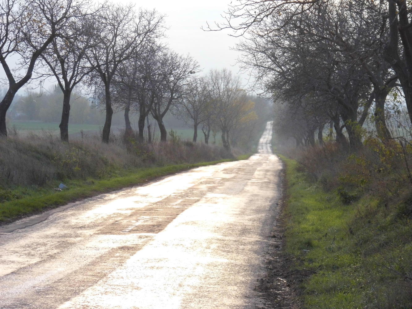 I turn left, off road 7 along a straight road to a place called Puzteszabolcs. The road surface is patchy and the constant shuddering aggrevates the knee pain. I am thirsty. The tap-water in the bottle does nothing. I forgot to do shopping. Having eaten well in Budapest, I've forgotten what hunger is.
