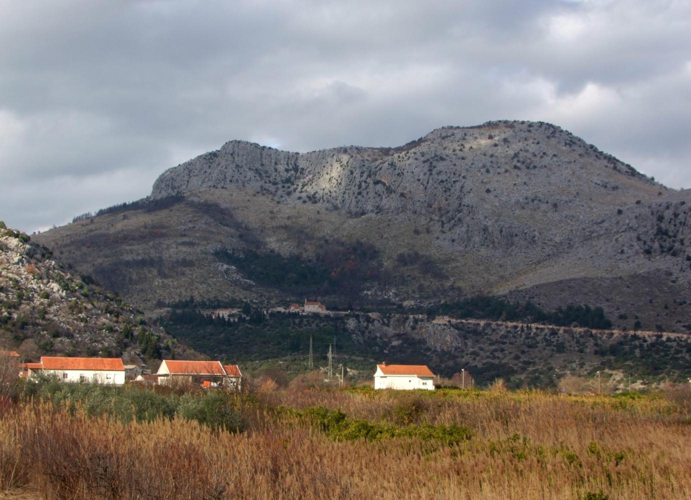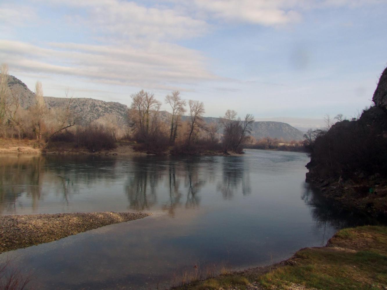 It's another fine sunny morning and after leaving Mostar shortly after nine, the road onwards is straight and flat through wine country. There are rows of vines on either side the whole way until the valley narrows with the road pressed in close to a river; below on the right, it meanders around and between sandbars. It is enclosed by willows and trees on either riverbank and beyond are bare rocky hills. And before long, the now sinuous road passes through a succession of short tunnels in the vertical escarpment rising on the left.