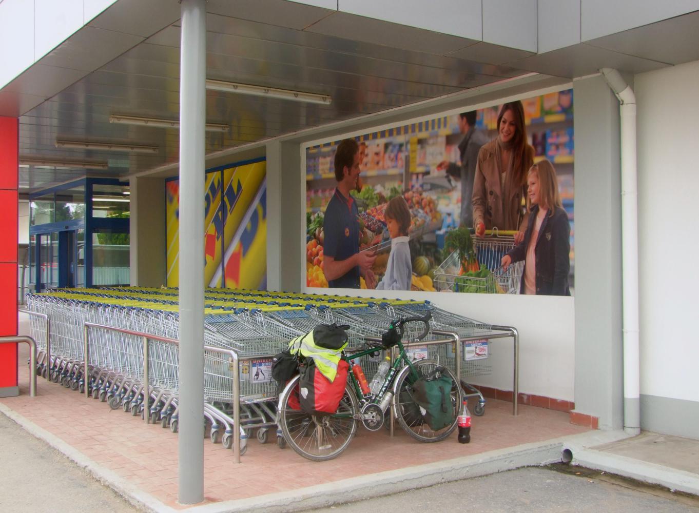 I got a fresh bottle of coke later at a Lidl on the approach to Thessaloniki. I had made good progress. There being little of interest to distract me from the straight highway and the prospect of reaching the city early, apart from signs at a few places for archaeological sites, but too far off on side roads to warrant a detour. The city is a lot bigger than I thought, with perhaps ten or twelve kilometres of rough uneven street, from traffic-light to traffic-light before turning down a street leading into a central square by the waterfront.