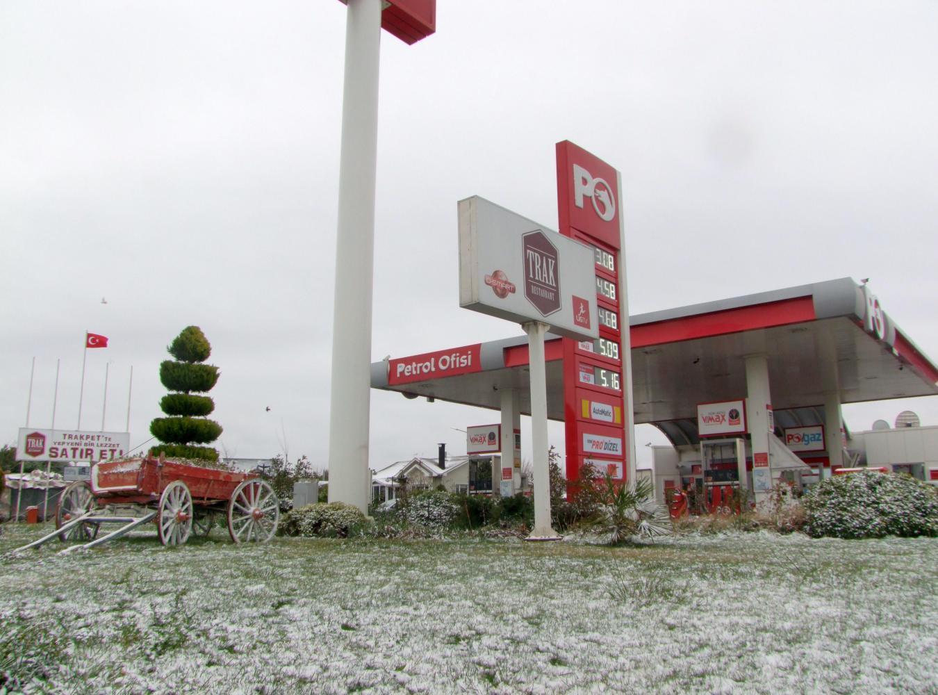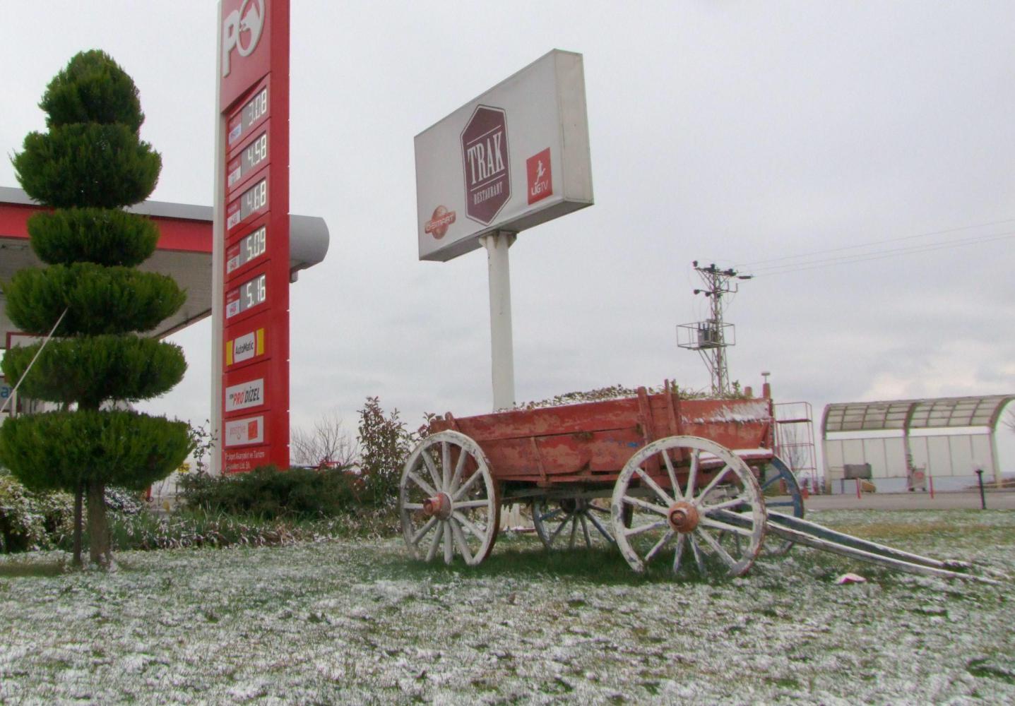 After a quick lunch of a hamburger with wrestling on the TV, I set off again thinking it is maybe possible to reach Istanbul before dark. But soon resign to the thought of stopping early as the wind becomes too much. Then with a flew pellets of sleet at first it starts snowing.