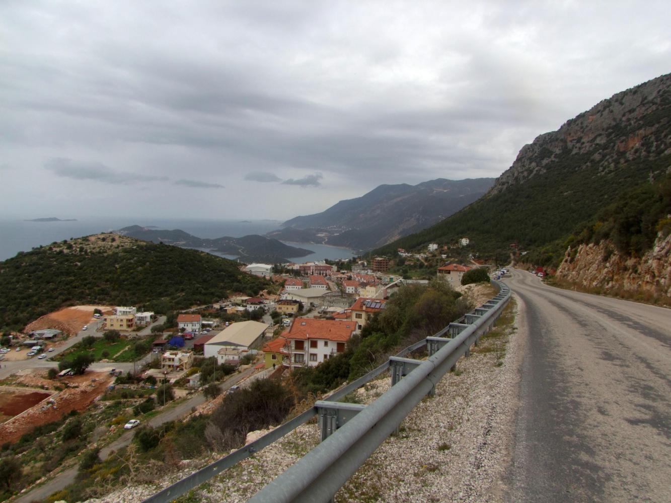 Around five I reach Fethiya, which as a town together with other towns means it remains urban for quite a bit. I had planned with it raining so, the most sensible thing would be to find a hotel this afternoon, but don't see any. There is a billboard for a hotel with no location, just a phone number. A lot of good that is. Nor did I want to turn off and ride into the town-centre and spend an hour riding through busy streets in the rain and perhaps not find any hotel.