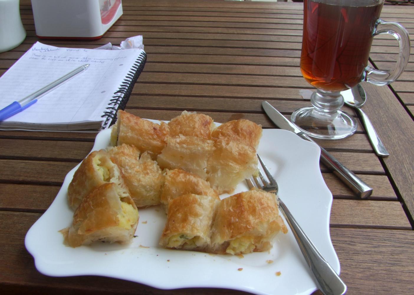 I now write from a petrol station café in Kalkan. I've had borek, the first borek, a puff-pastry with filling, I've had since Bosnia. This one tastes just as nice as the former, though they seem to only come with cheese filling here, whereas in Bosnia they also have meat filling. while here I wonder how arduously hilly the road is ahead. There is just over two-hundred kilometres to Mulga, or Marmaris where I'm heading and I'd like to get there tomorrow afternoon.