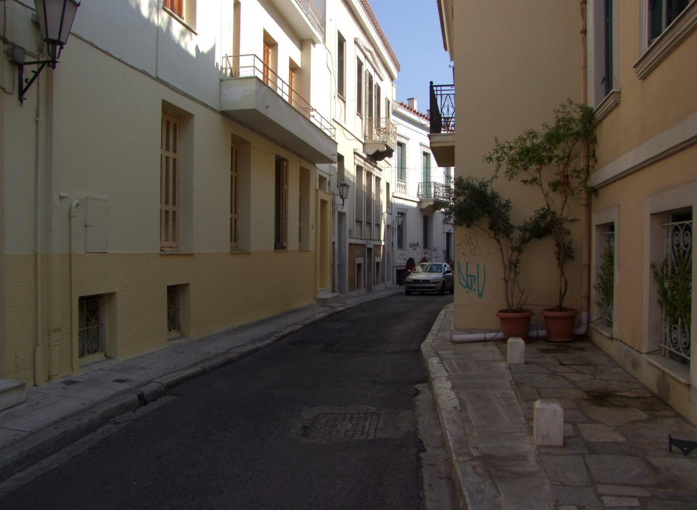I'm back at the tourist office just as the man has turned up to open up. In addition to a city-map I ask for and receive a list of hostels. He points out that Athens Backpackers is the nearest, just around the corner. Ah. I saw them on the webpage at sixteen euros for a bed in a dorm. I don't mind a dorm but not at that price. But decide on checking them out anyway. I get to the address, a building at an end of a street and see a note on the door "Due to emergency boiler maintenance the entrance is at Vernon 3 beside The Athens Sports Bar." I take this to mean round the corner on the building's other side. But its confusing me when I turn the corner, as the street isn't Vernon, nor do I see Athens Sports Bar. I didn't want to stay anyway.
