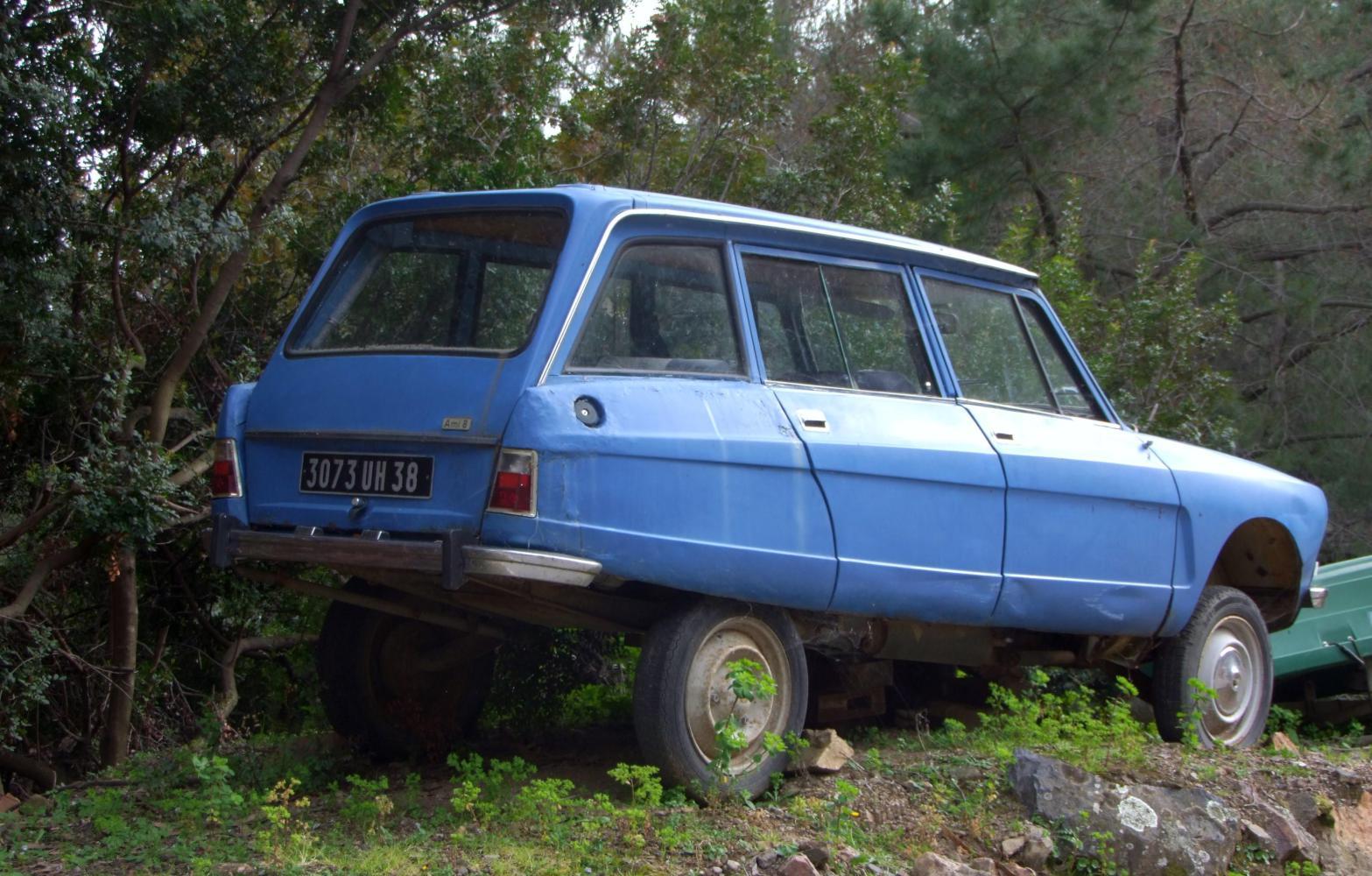 I pass through a village. The only inhabitants I see are two old men sitting outside a house chatting who glance up at me as I pass. Further the road narrows considerably, then there's a "Route Barre 700m" sign. A little way on I see why the road is closed. A landslide. Big chunks of the tarmac are broken off and have fallen down the slope into the valley.