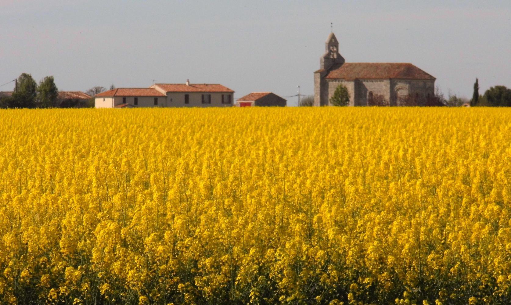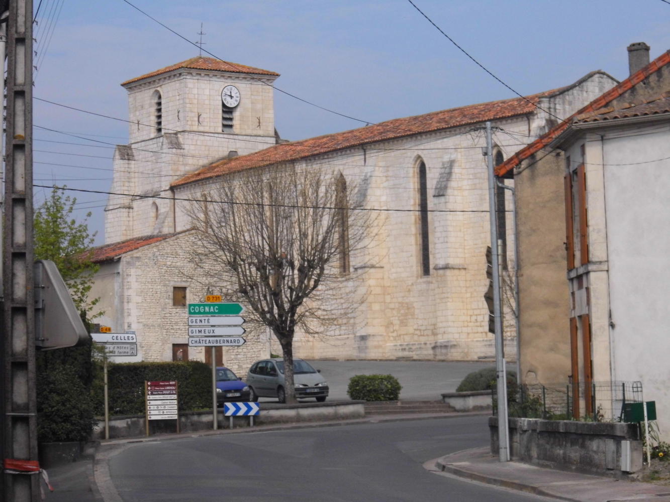 The hazy mist laying in hollows soon burns off the rolling verdant green cereal crops and rows of vines as I reach Barbezieux Saint Hilaire by ten, where there's a long queue of people stretching out into the street at the boulangerie. Further along the street I pass a stooped old man lurching homeward, his arms purposely trust behind his back with hands clutching a baguette.