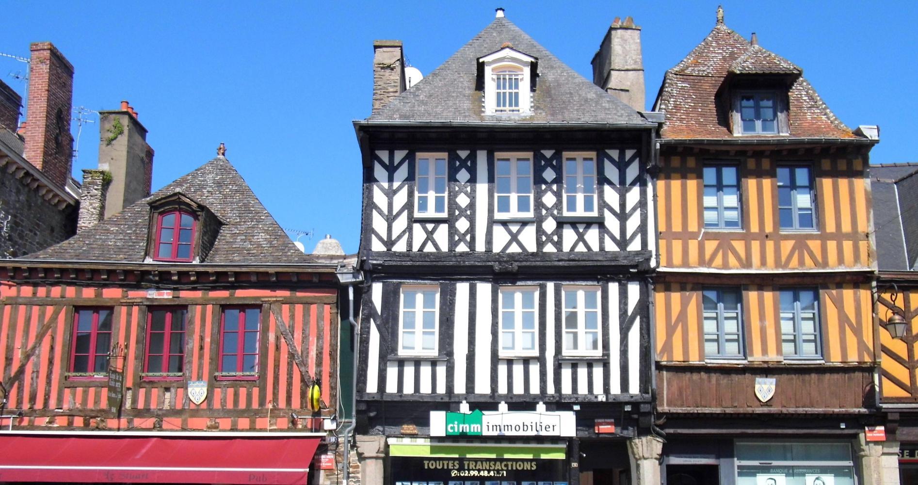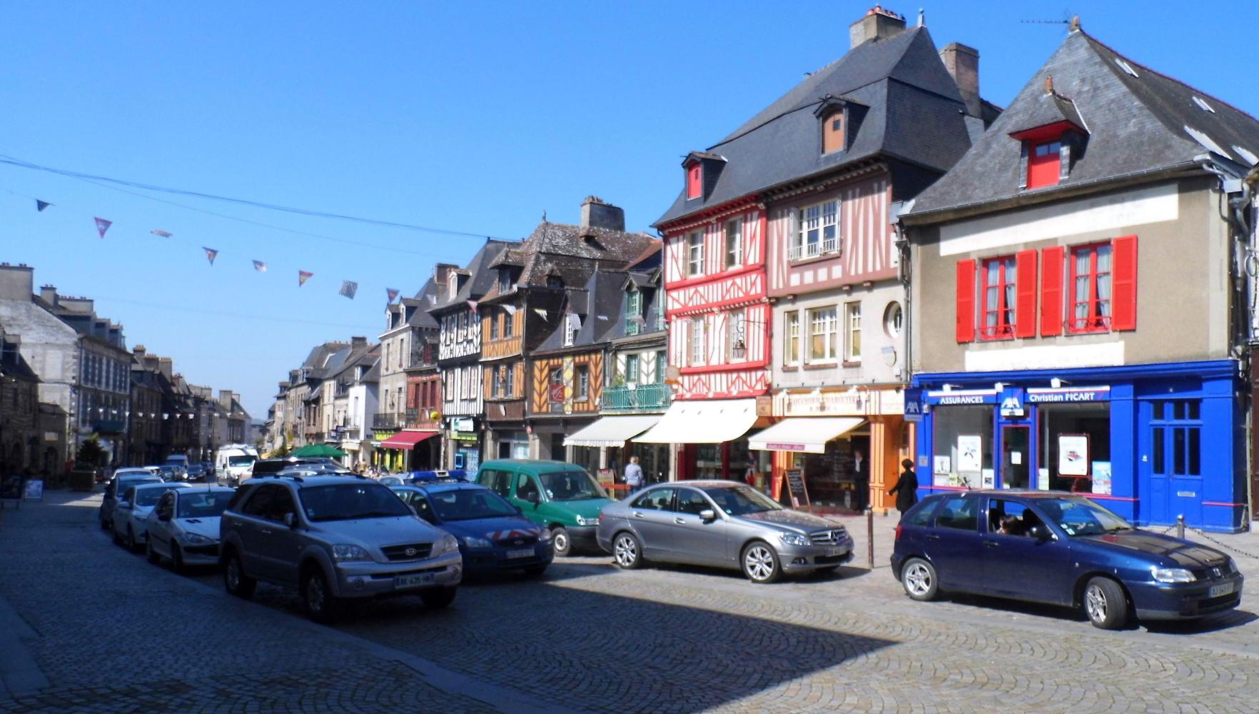 I was heading for St Malo, but after checking the map while stopped in a crossroads village, decide to veer east, twelve kilometres to Camborg, then north to Dol Du Bretegue, which I approach coming up on one o'clock, when its warm and the legs are feeling tired, while coming to a halt in the main-street of colourful half-timber houses above tables of people dining, or just having a refreshing cool drink.