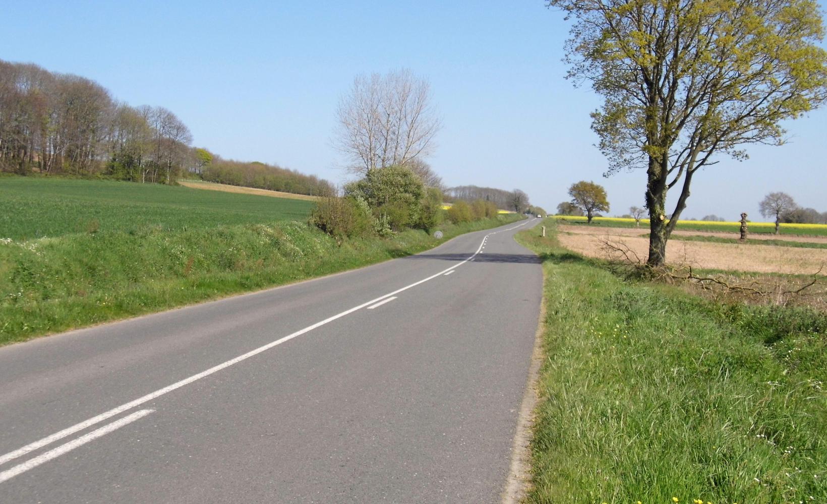 Riding out of the city from this side is a great deal easier than either riding out or in from the south or east. From the hostel, I follow the road for St Malo. The highway with bumper-to-bumper rush-hour traffic, has a marked-off cycle-lane, and after a few kilometres reaches a big roundabout where most of the traffic joins a motorway, while a cycle-sign directs me along a quiet road continuing parallel.
