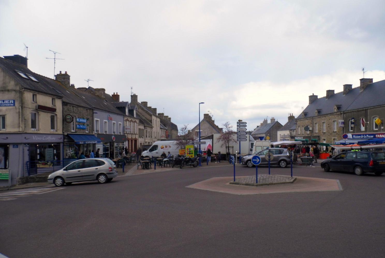The road by-passes a place called Neskey, then with twenty-four kilometres ridden, I turn off down towards the coast to Barneville, as I really need something to eat. You would be mistaken for thinking you're in an English west country village, as there are as many English accents here as local. There's a street market with tressel tables decked with lamps and ornaments, antiquities and curiosities. And away from the market, people are seen walking along the street with the bargains they've picked up.