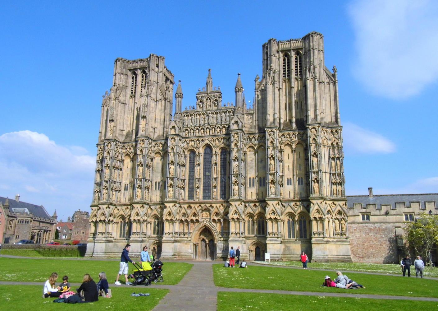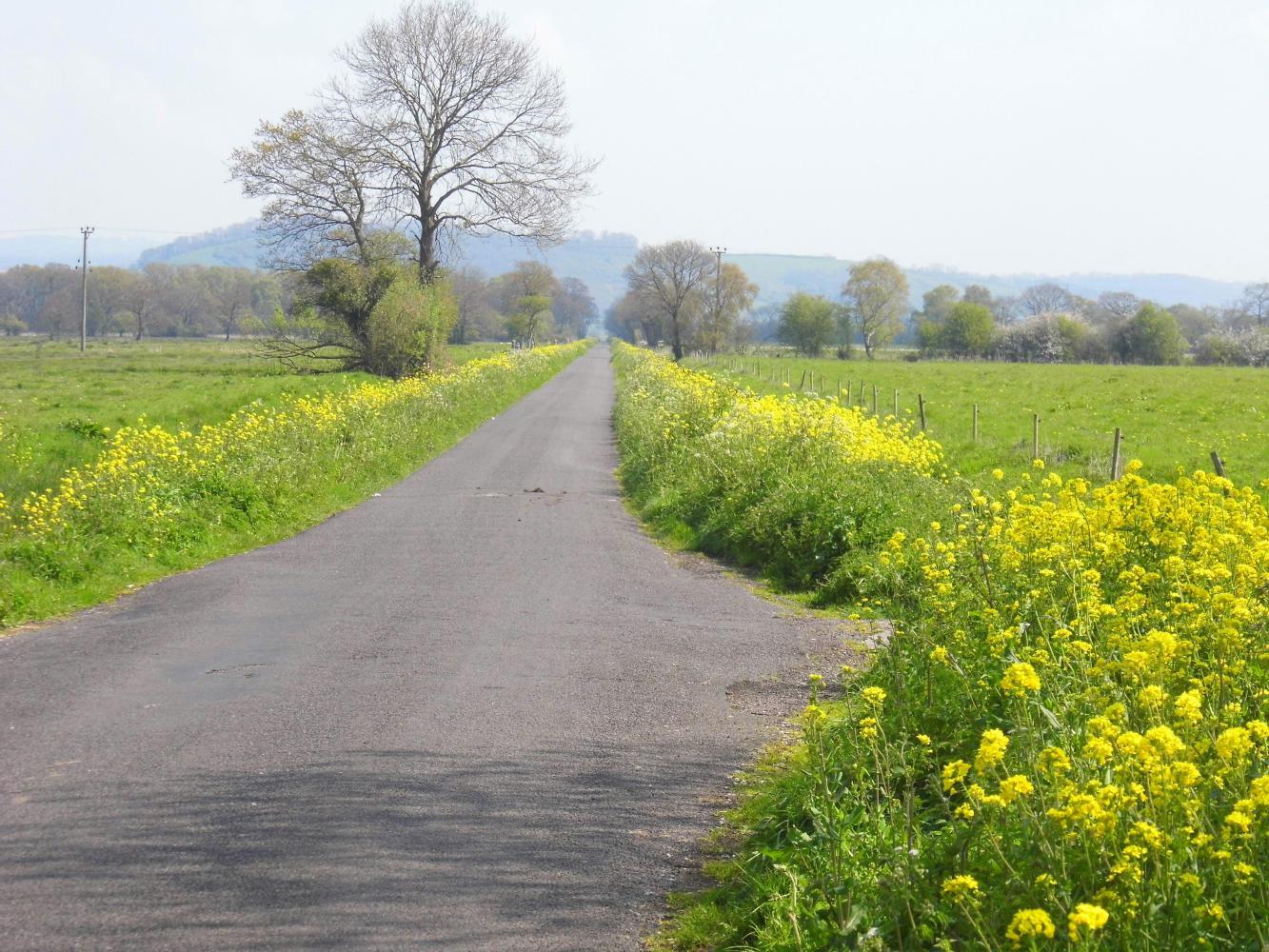 From starting off, the road continues uphill, then levels out upon a high plateau with a view across fields of sheep and their lambs, before going down a ridiculously steep twisting descent to Crewkerne. Throughout the morning, I spend a lot of time consulting with my new atlas, working my way around the main A road to the west, along quiet B roads. I pass through the village of Somerton, then sweep downhill across a valley and up the other side with bright yellow rapeseed across the hillside on the right-hand side. Riding pass Glastonbury, I pick up the cycle-route again, which is a pathway alongside the A road north to Wells. There's a family group cycling on the path in front of me. The young woman to the rear shouts forward to her companions "there's a man behind us! Let him by!" They veer to the side and the woman says "Sorry" as I pass. Why sorry? I tell you I done nothing wrong.
