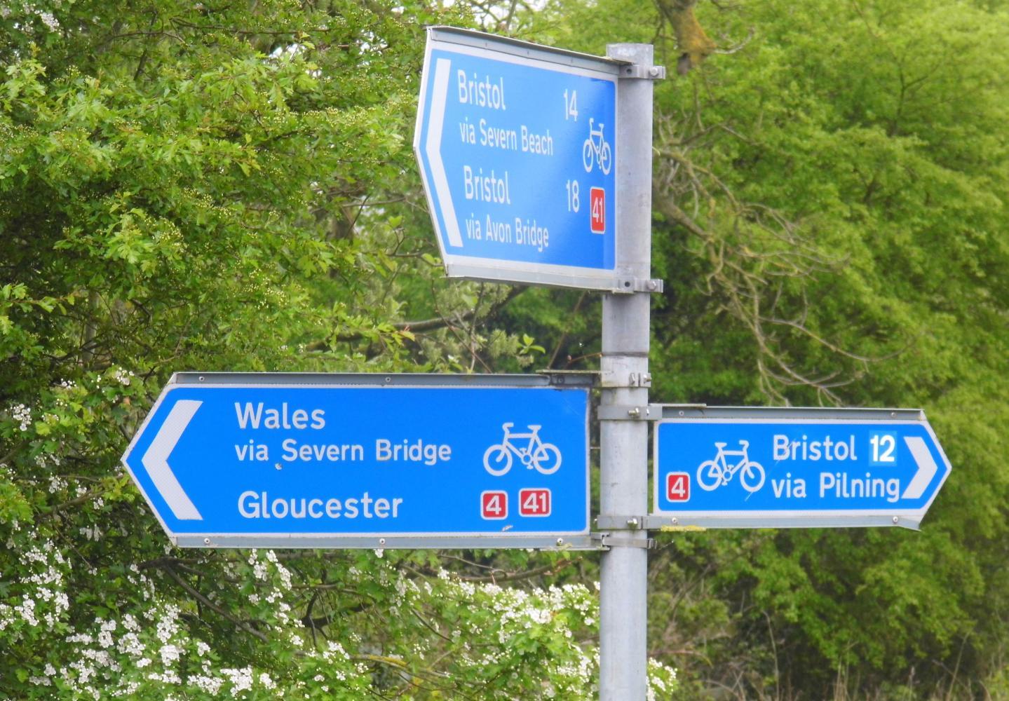Very soon I leave the idyllic Mendip Hills behind and become immersed in a ribbon of built-up areas to the south of Bristol. Here I pick up the blue cycle route signs, which lead me on through a wooded valley, parallel to the motorway's roar of trucks and cars running in both directions, then off to Portishead on the Severn estuary; from where, the cycle-route passes through council estates, along leafy residencial drives and through woodland bridle-paths. I go quite a bit without seeing a sign for Avonmouth, my preferred route north.