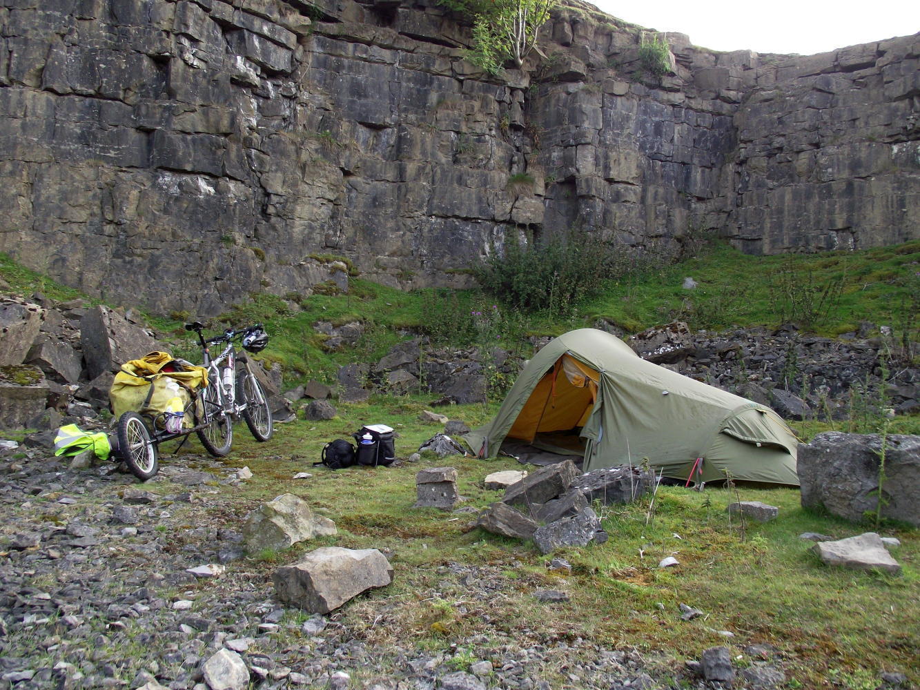 I most be getting old and less adventurous these days as I went round by the bridge this time. I also remember the long steep climb out of Weirdale going south. It wasn't any easier this time; but just beyond the crest, there is a dip down to a stream and an old stone quarry where its possible to camp if I hide myself away because of the NO CAMPING signs.