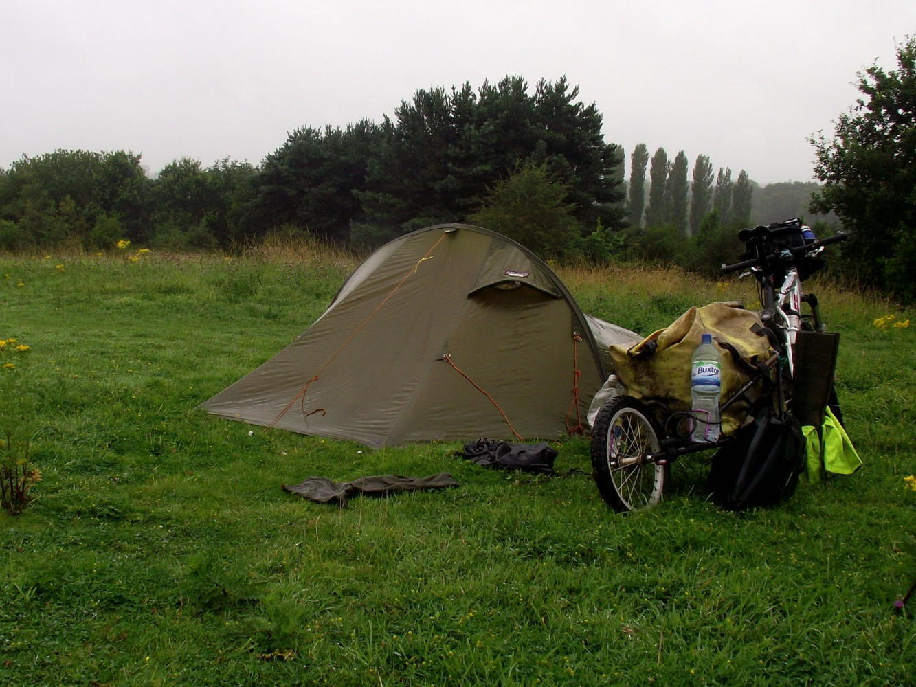 At the moment camping's a wet existants. My tent is superbly waterproof but still the floor gets wet from my carelessness such as rainwater dripping off my jacket or bag. Nor is there hanging clothes out to dry in this weather, instead after a wet day, I get into the sleeping-bag fully clothed. My body heat soon drys everything out, a kind of dried and pressed ready to set off in the rain again.