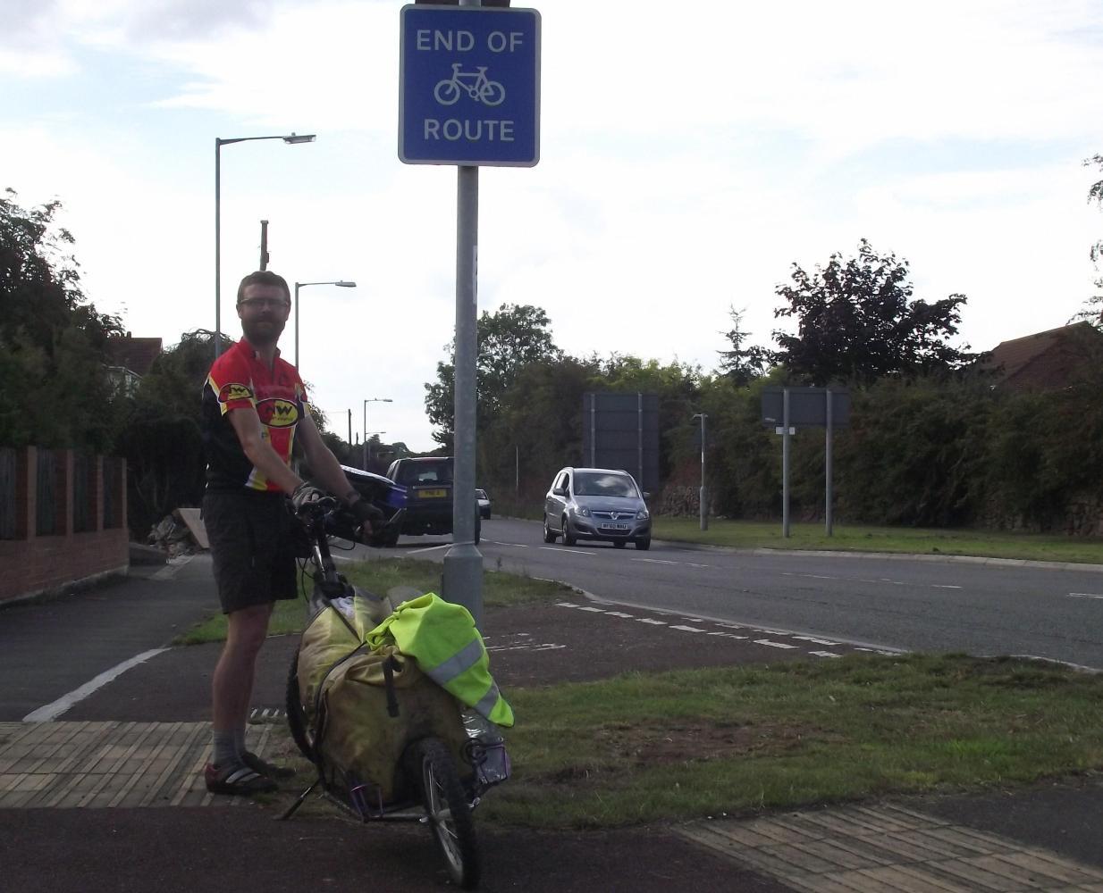In the afternoon, I continued cycling on busy roads through Glastonbury where along-the-way somewhere I picked up a cycle-path but it came to an end in Street. Is luck then to find a minor road alternative west to Bridgewater, beyond which there was yet another cycle-path out of town along side the busy A road west, but, it was shortly to come to an abrupt end. I stood disappointed and nervous then as the only way ahead was to take my chances with the busy Friday afternoon traffic.