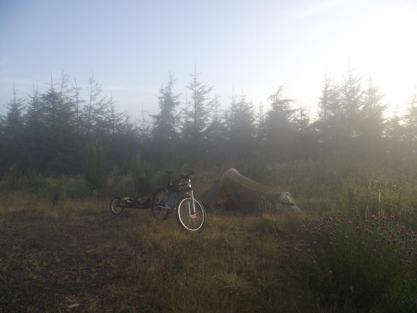 The woman walking her dog called out "Com-mon Josey. Come! Naughty Dog!" as the curious overly friendly black Labrador sniffed at my tent and then put her wet mussel up to my hands. I petted her and she looked up at me. "Joos-sey comma-along now!", her master called out more insistently. The dog glanced back through the corner of her eyes and with a wag of the tail looked up again with an urgent look in her eyes before swinging around and bounding back to her master. "Mornin! Nice morning." the woman called over before strolling on along the forest road, Josey springing along behind with her proud tail raised, her sensitive mussel to the path and slobbery tongue hung out laughing as if to say funny goings on. I can't but understand why he camped there for.