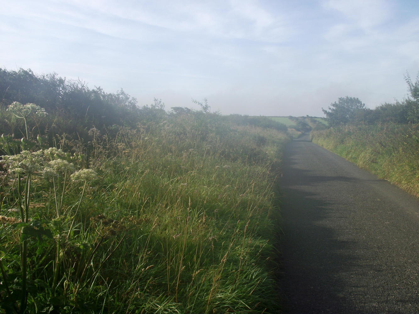 I thought that it was still the three (NCN) cycle route but, I most have missed a turning when descending down to a village where failing to see a three (NCN) sign onwards, I'd to join a shoulderless A road with it's steady flow of cars and commercial vehicles passing frighteningly close until I reached the next village, Camelford where, I turned off onto a B road thinking it would be quieter, but it happened to be the main route from this direction to a town called Bodmin and so was little better. I stopped in a lay-by and sat down to eat chocolate and drink coke. A man out running runs over and stops and asks while getting his breath back.