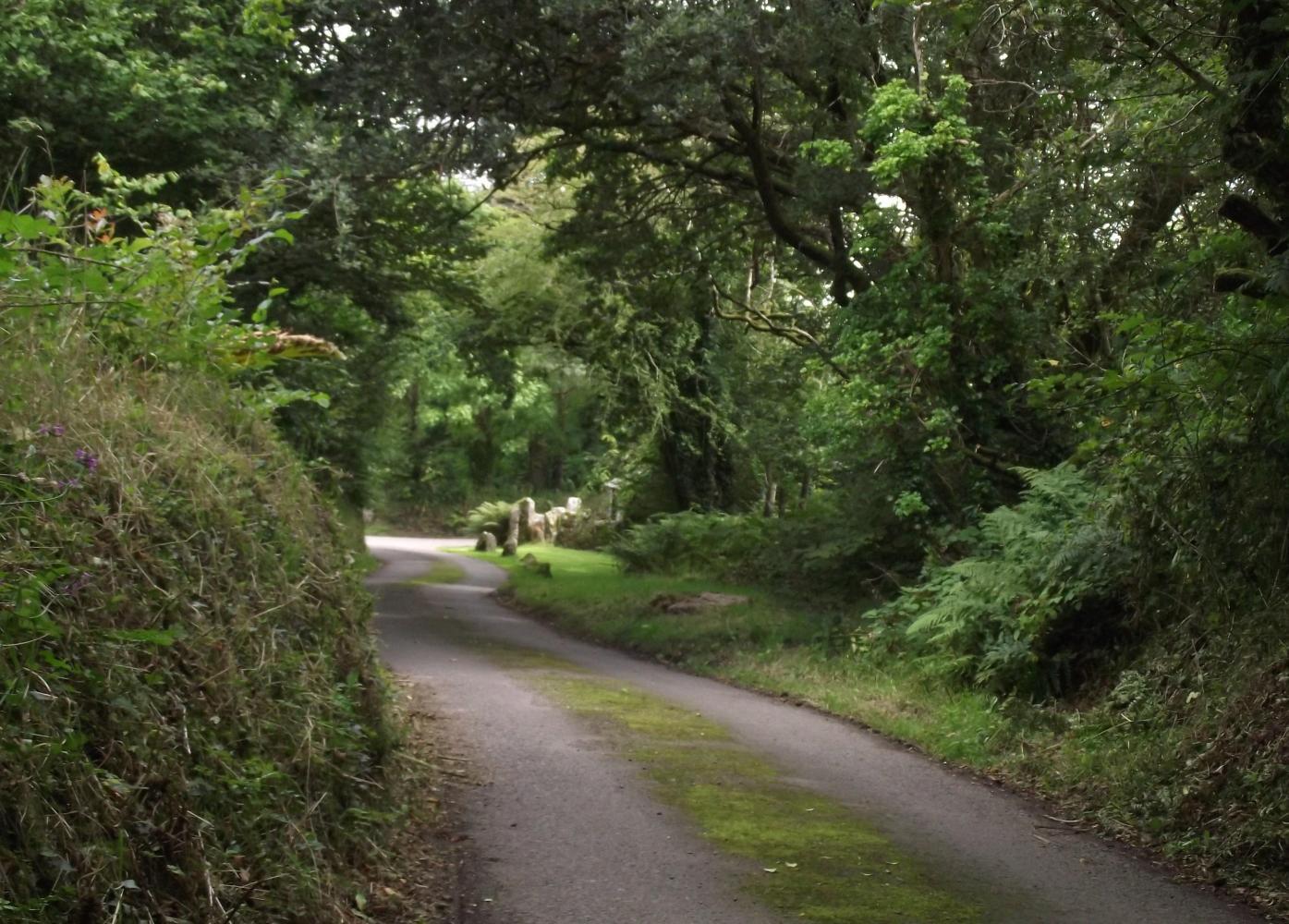 I cycled past old station platforms along a well kept path through a leafy wooded gorge. There were all types of people cycling, young couples, whole families and pensioners. It was very encouraging to see, people from seven to over seventy all enjoying cycling on a fine Summer's day. I didn't have much of a clue where it led to but after seven miles it came out at a car park with a town ahead nestled amongst round hills. The town when I got there was full of holiday makers and as it was in the wrong direction for Plymouth which I hope to reach tomorrow, I retraced my way back towards Bodmin where on the way I stopped at a picnic table to lunch.