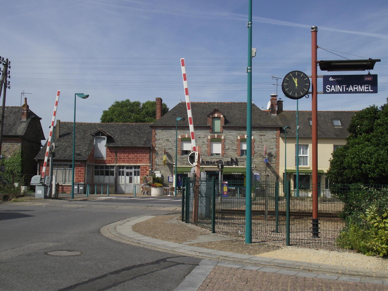 I rode over a level-crossing and the church bells rang out twelve midday as I paused in sunshine in the village centre; here, I saw a green route sign for a place called "Chateaugiron" which was on my map so I set off that way. The green route signs just about pointed me in a different direction at every crossroads I came to. I cycled along leafy country roads, reaching Chateaugiron and then cycling onwards I saw a sign for a place called Janze which on looking at my map, saw that it was back by the autoroute south, my point of reference.
