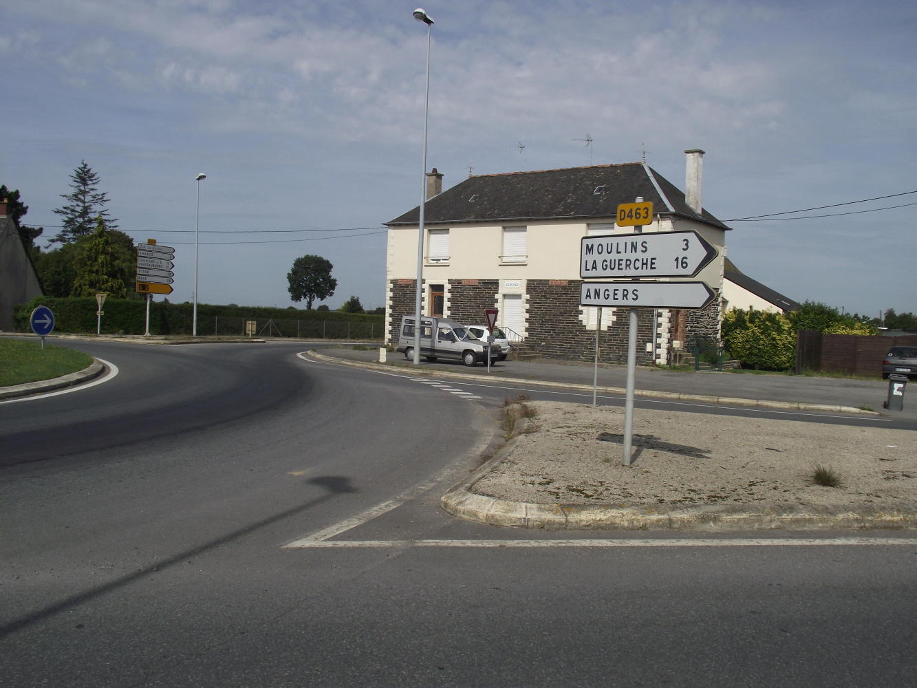 I cycled away from the hostel on the cycle path alongside the canal to the main avenue and cycled alongside it to a roundabout where I took the turning "TOUT DIRECTION" shown on the bright green sign. The roundabouts came regularly then and I kept following the road indicated as Tout Direction until a roundabout thereon the bright green sign were LE MAN, ANGERS, two cities, the former to the east and the later south, either direction would have done then to escape the urban spread of big roads until I would reach countryside.