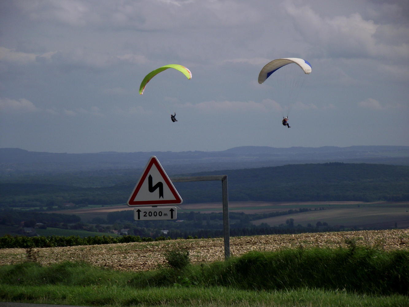 I took some photos and marveled at the surroundings. Here was a bleak landscape with neither hedgerow nor but a few trees. Looking onwards, across the ploughed furrows, cars could be seen moving along the horizon as if in slow-motion, toward a curve in the road just ahead. Cycling on around the curve, I continued at a right angle to the road hitherto and before long, cresting the horizon, I saw vineyard clad hillsides, among which was the town of Sancerre perched on a hilltop. I stopped at a crossroads there, drawn by the sight of abseiling off the hillside. I took photos then set off again. A long descend before a steep climb up to the town centre.