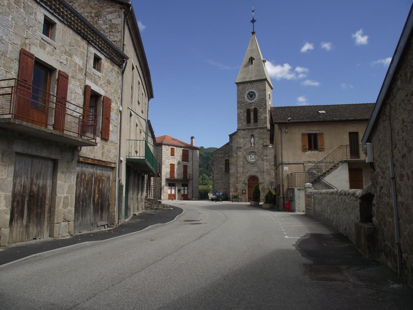 I cycled sixteen kilometres more on department road eight, at which point Is glad to turn off the busy highway and cycle into the twin town of Saint Just, Saint Rambert, a town with an old church from the sixteen century according to a sign on the way in. I would've taken a photo, but the sun was strongly overhead by now, so it wouldn't have made such a good picture.
