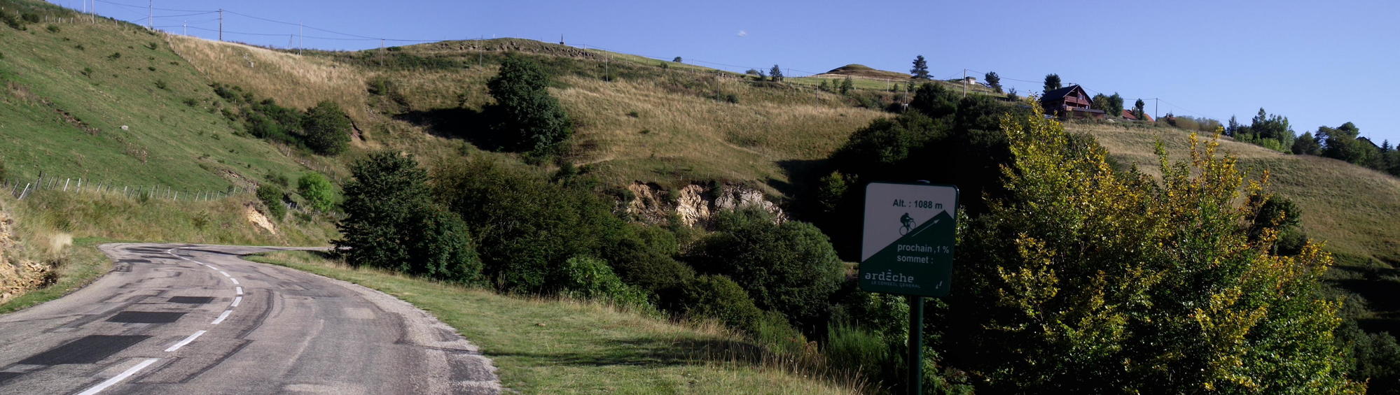 I passed a sign marking The department boundary, whereby I passed from the Department of Haute Loire into The Ardech, and a kilometre further stopped at the information welcome board, whereon a map of the department, there were lots of skier icons marking location du ski: as already said, I can imagine that much of what I'm looking at is regularly covered with a thick blanket of snow come winter.