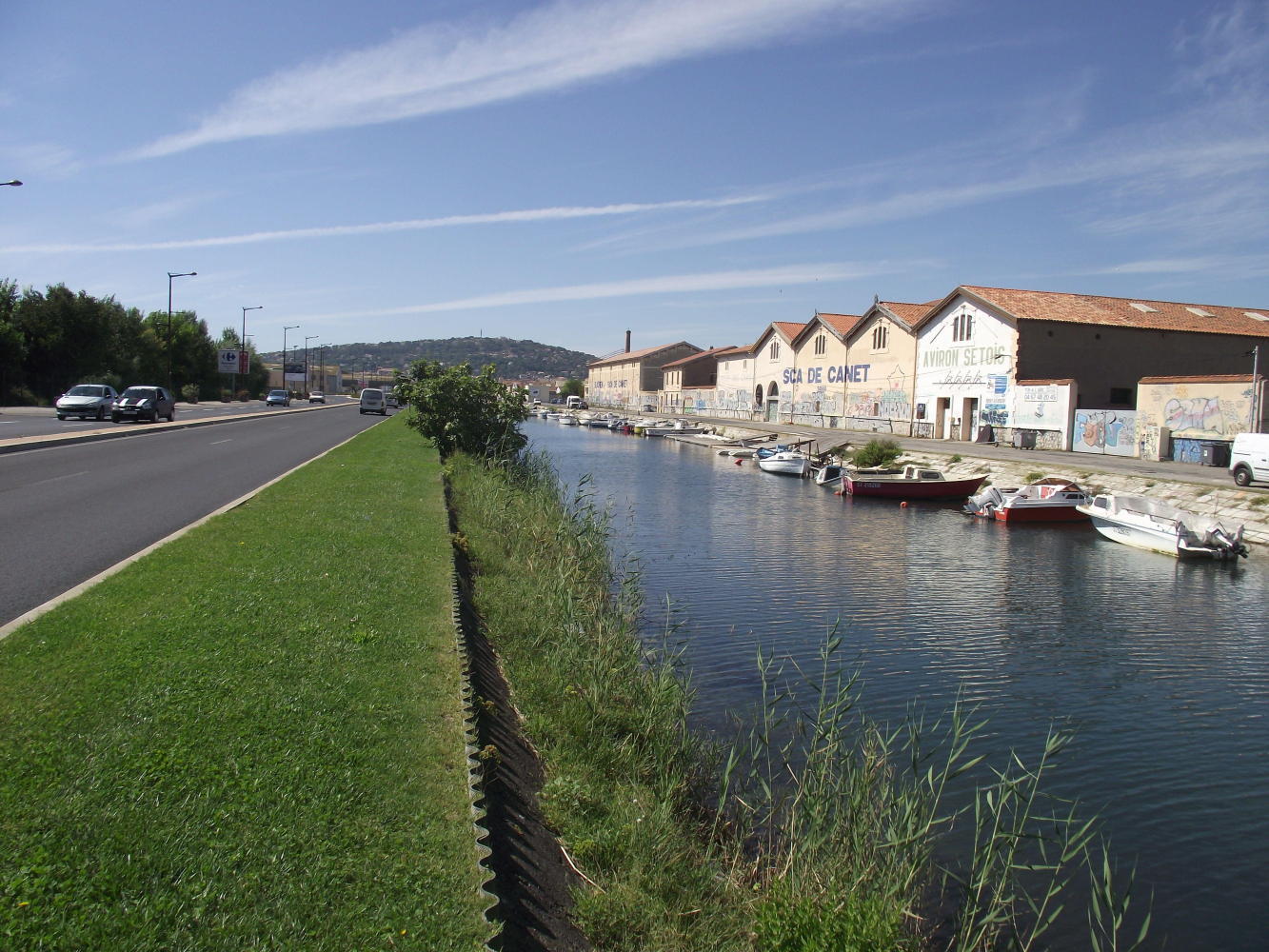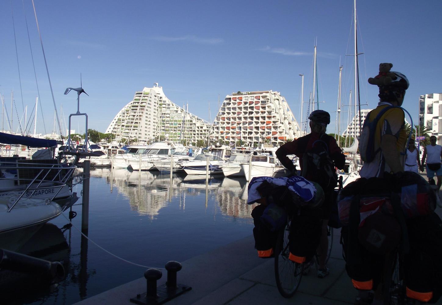 So from nine o'clock, when the Canadians rode on, to noon, when I reached the city of Sete, I felt the day was going well. The cycle-path followed the Mediterainian for quite a bit, then the Sete canal; though, on cycling into some of the resorts, the cycle-path was discontinued and I'd a hell of a time finding the cycle-path again on leaving these towns. And there was a stretch of busy road approaching Sete where there were no alternatives.