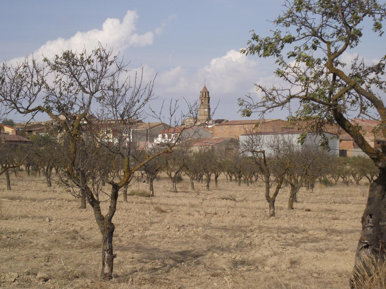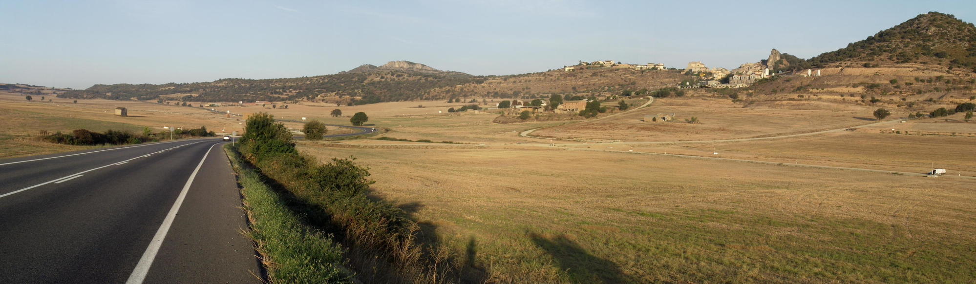 Cycling south in the afternoon, the sun made it oppressively hot and tiresome in the arid brown countryside with villages clinging to hilltops off to the side; then around about four o'clock, the sun had gone in a haze, and a brisk breeze blew as dark rain cloud moved over the road ahead. It suddenly felt cold and I stopped to put on a top, but although it got quite dark and I rode on a sheen wet road for a bit, the rain passed over and off to the side with me feeling no more than a few big droplets.