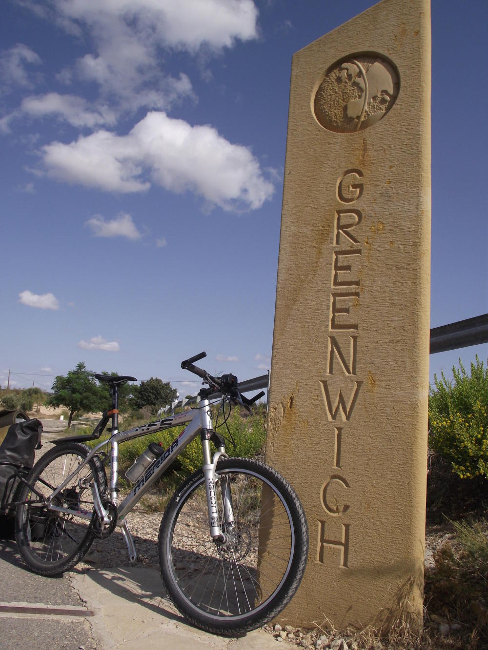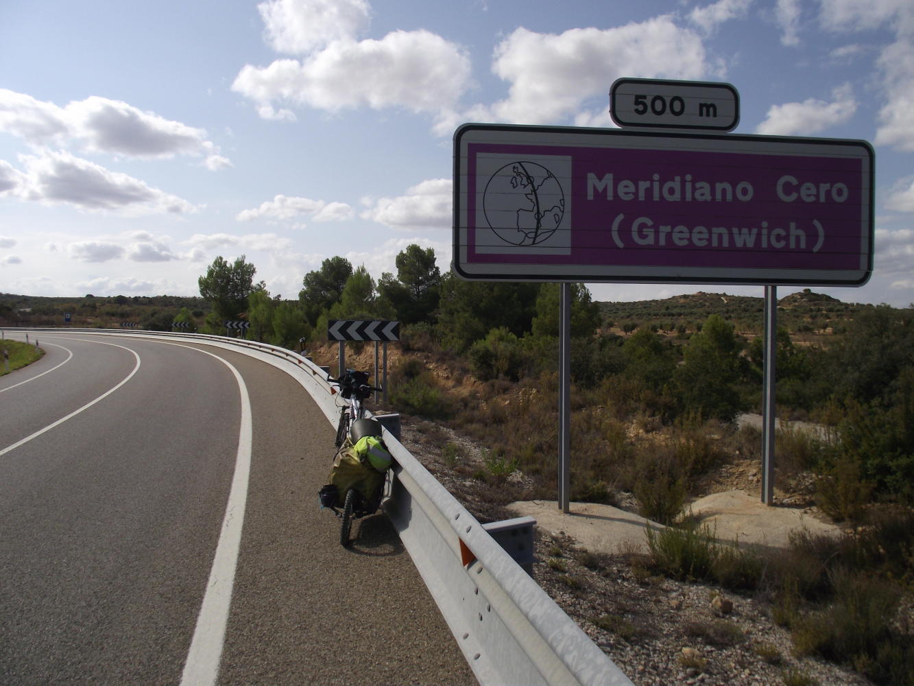 The road kept it's high path and the afternoon was pretty uneventful, except for crossing a meridian, aroundabout three o'clock, which I wouldn't have known about if I hadn't of come to a pink coloured sign with the words "Meridiano Cero" and Greenwich underneath in brackets.
