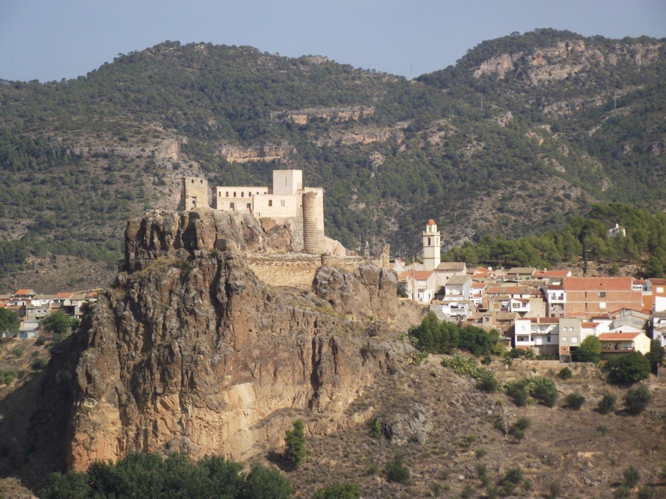 It was a pleasant road all the same with dwarf pine plantations on either side and I easily found a shaded grove to lunch in. The afternoon saw me reach and drop down into a great depression to a riverside town called Cofrentes, dominated by the cooling towers of a power-station. Again, the road was elevated across the valley on a viaduct from which, I stopped and viewed a castle on a rocky promontory by a curve in the slow snaking river below, and the usual town with it's bell-tower further along the riverbank.