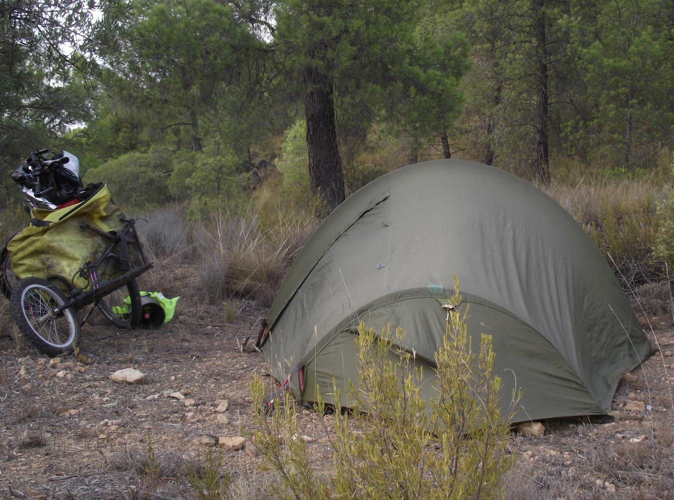 Riding on, it was a long graduated climb up again on a newly-built road with plenty of remaining old road curving-around and behind cuttings at the side. And as it was after four o'clock now, I looked for and found a place to camp up a lane-way from a section of the old road.