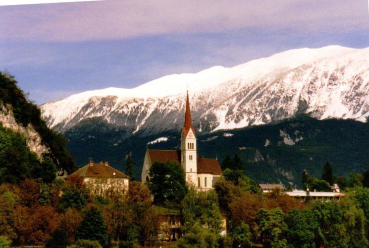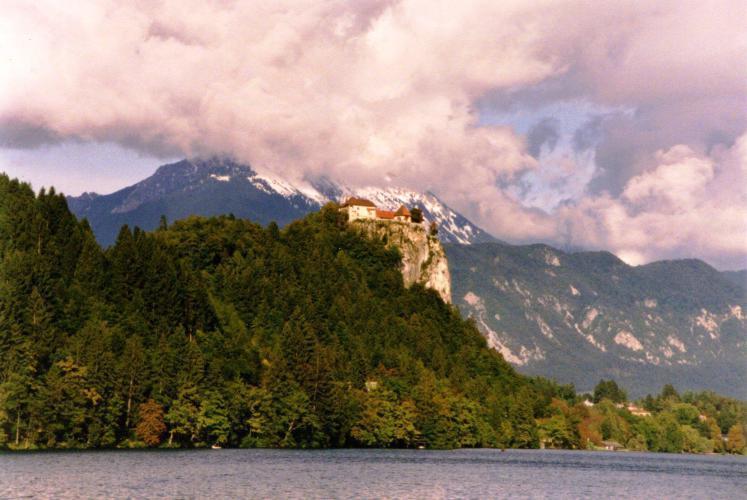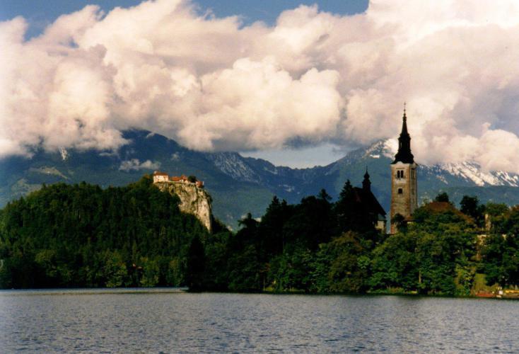 After shopping we were lured on to a boat tour of the tiny island in Lake Bled. We waited for 10 or 15 minutes for the boat to fill, eventually setting off with 6 other passengers (including a delightful pair of elderly, very British ladies) for a very enjoyable excursion. As our oarsman steered us toward the island we enjoyed gradually clearing skies, some sun, and a very scenic perspective of Bled Castle and its surroundings. On the island we spent a half hour visiting the small church and then returned to the boat for the journey back.