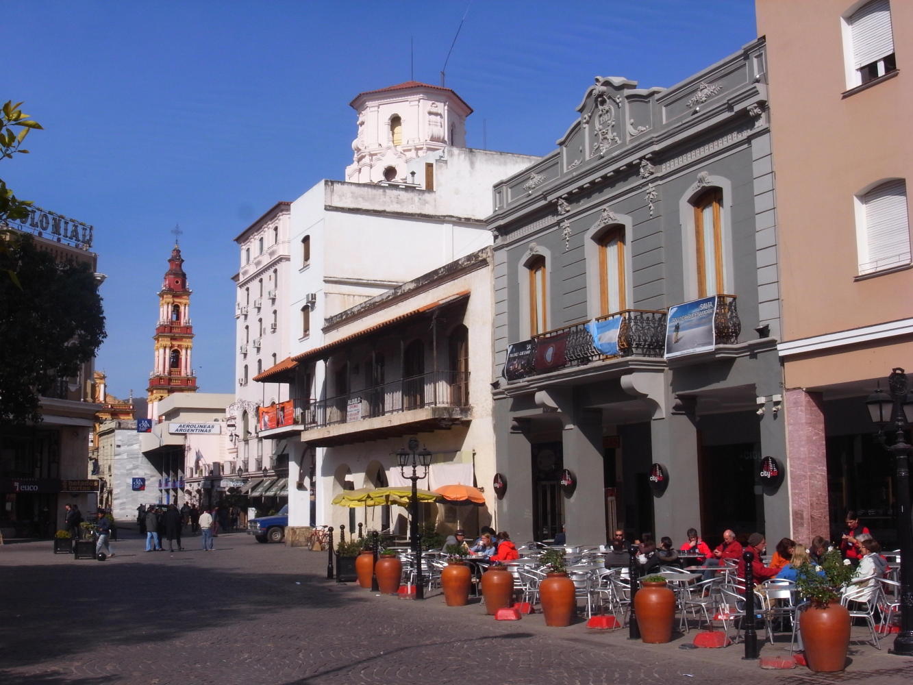 Yes I know the start date was Thursday and it's now Friday afternoon and I'm still in Salta, but I promise to get to bed early tonight to be on the road tomorrow. Yesterday morning it was daylight when I came back to the hostel after a night out dancing with my friend so I'd no desire to face a day in the saddle. It was a farewell night and now I'm feeling sad to be leaving as it will be many months before I see my friend again. I woke-up after a few hours sound asleep in time to have lunch and it was a fine crisp winter afternoon so I decided on a bike-ride to La Caldera and back 54km. It's a popular run for local sport and racing cyclists so its often that we meet and wave. On the way out-off town there's a cyclelane which follows the autopista which you could just as well cycle on as the police don't seem to bother you even though there's the usual no-cycling signs. It's perhaps saver on the autopista anyway with its wide shoulder and bridges over intersections than the cyclelane which is discontinued at every roundabout intersection underneath, there the cyclist must cycle with the cars to the other side where the cyclelane begins again. The cyclelane finishs at a roundabout with a big armadillo scrupture in the middle. Thereafter its another few kilometre until the road crosses Rio Caldera from where it follows the river up the valley to it's namesake village. Lastnight was another late night. I was with people from the hostel to a pena which is a place where Argentinean folk music is played so I'm here yet another day just walking the streets taking photos The problem with Salta is it's such a nice place its hard to leave and if you get romantically involved it's even harder to leave. She doesn't know it yet, my friend thinks I've gone and so it will be a surprize when I turn-up later at her house with Flowers. Its the one thing I wanted to do yesterday but the flowerist was closed as it was late when I got back to town. So then there'll be nothing else to do but leave.