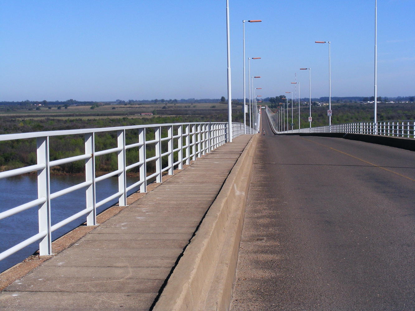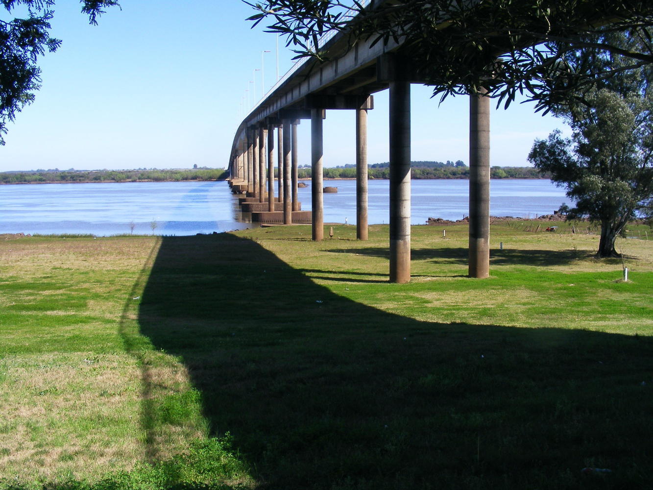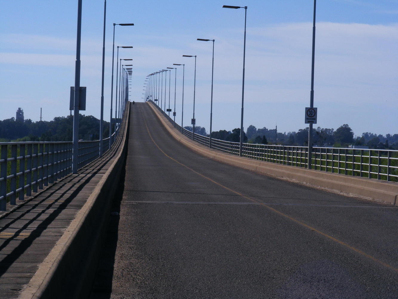 It always takes allot longer to decamp when you've stayed in a town a couple of days. Everything is out of the bags and strewn around everywhere, so consequently it was nine thirty allot later than I would've liked when I got away this morning. After cycling over the long bridge over Rio Uruguay I went through the normal border routine. I cycled the tranquil riverside route into Paysandu and after visiting tourist info found the bike shop but I've got to wait till four thirty until it opens. Meanwhile I've been to an ATM. I've been told the exchange rate is 5 to 1 Uruguayan pesos to Argentinian pesos which is perhaps something like 30 to 1 sterling or 25 to a Euro.