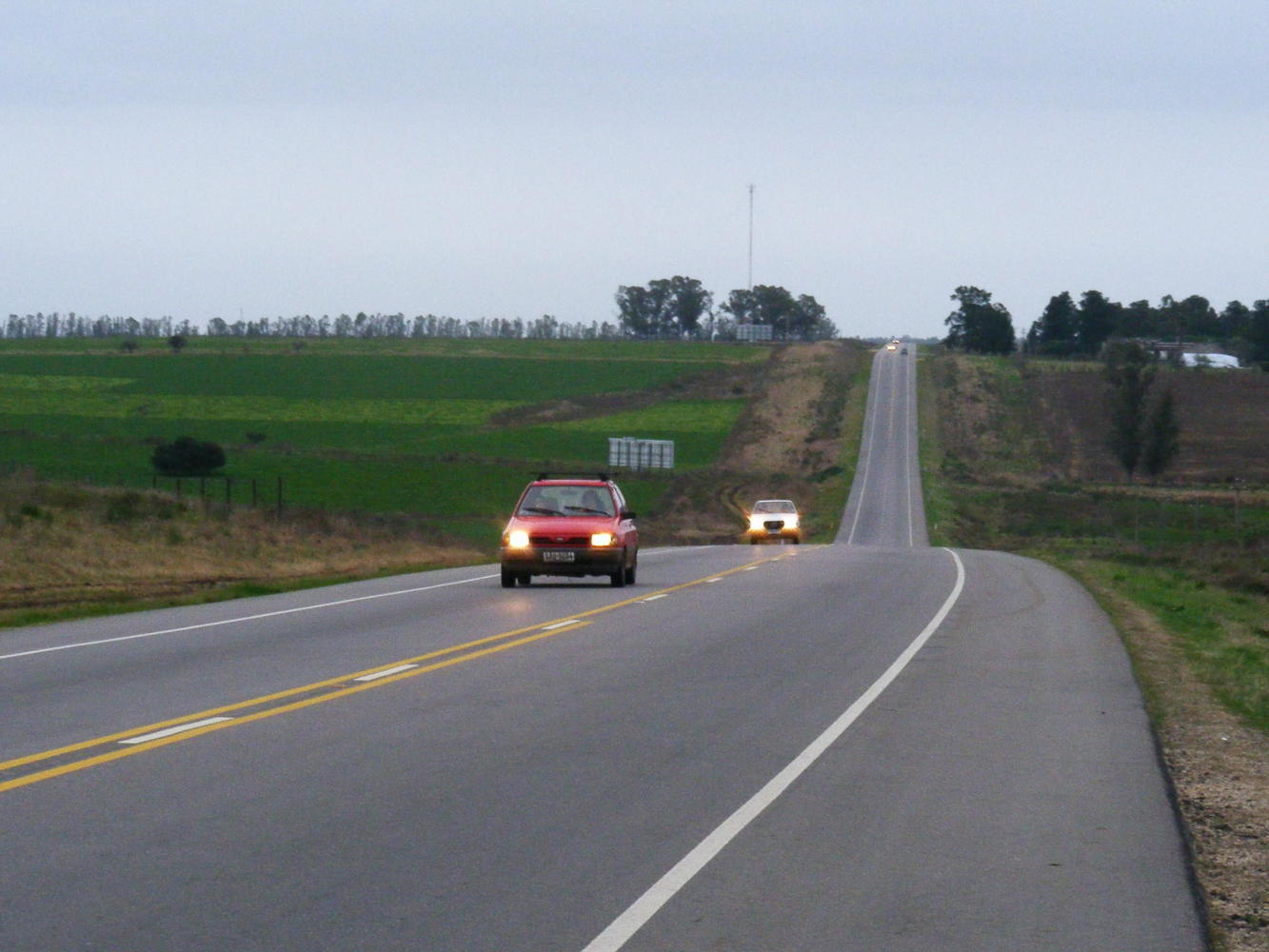 I's thinking that I've never seen the police in Uruguay unlike in Argentina where they're everywhere. Presently a police car passed slowing down and pulled in on the shoulder ahead. Two police officers got out and flagged me down. Seems I thought too soon. 'What can it be' I think. They were very amicable asking me the usual where I'd cycled from etc. Then they asked to see my passport and to take everything out of the bags as if there was something in there that shouldn't. The officer with my passport got back in the car as he had to check my details with the computer in the office via radio. The other smoked a cigarette and talked about the weather. He sucked on it furiously and had it smoked right down to the butt almost burning his fingers when his college returned and handed me back my passport sorry that they wasted my time as well as there own.