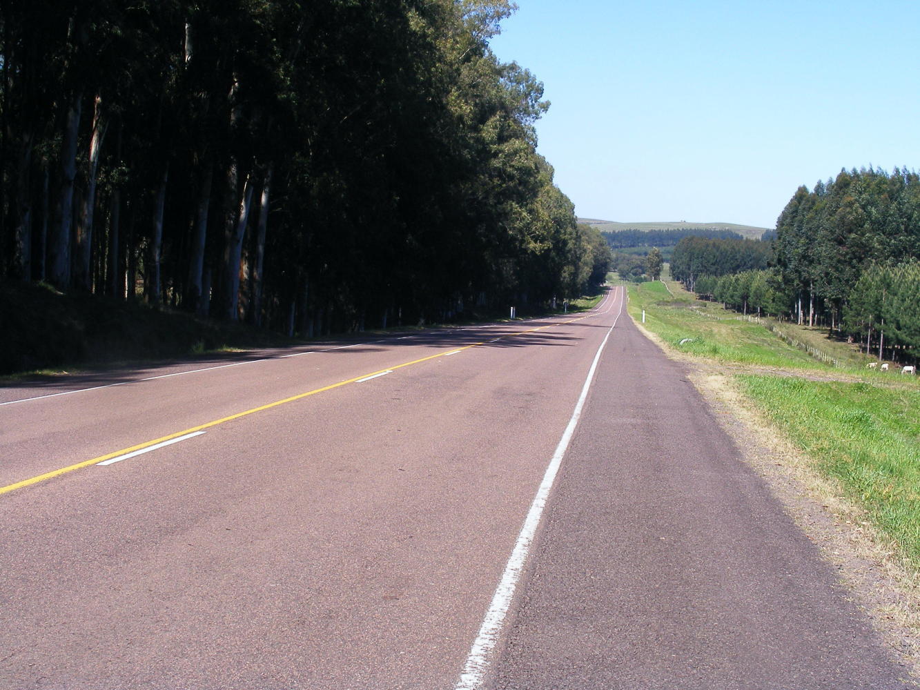 The remainder of the way to Tacuarembo was uneventful apart from lots of small groups and individual racing cyclists on afternoon training rides. One I saw before setting off after lunch was ambling along looking at his pulse-meter. A little later a big logging truck past me and the same guy was sat in behind pedaling his heart out on his return to town.