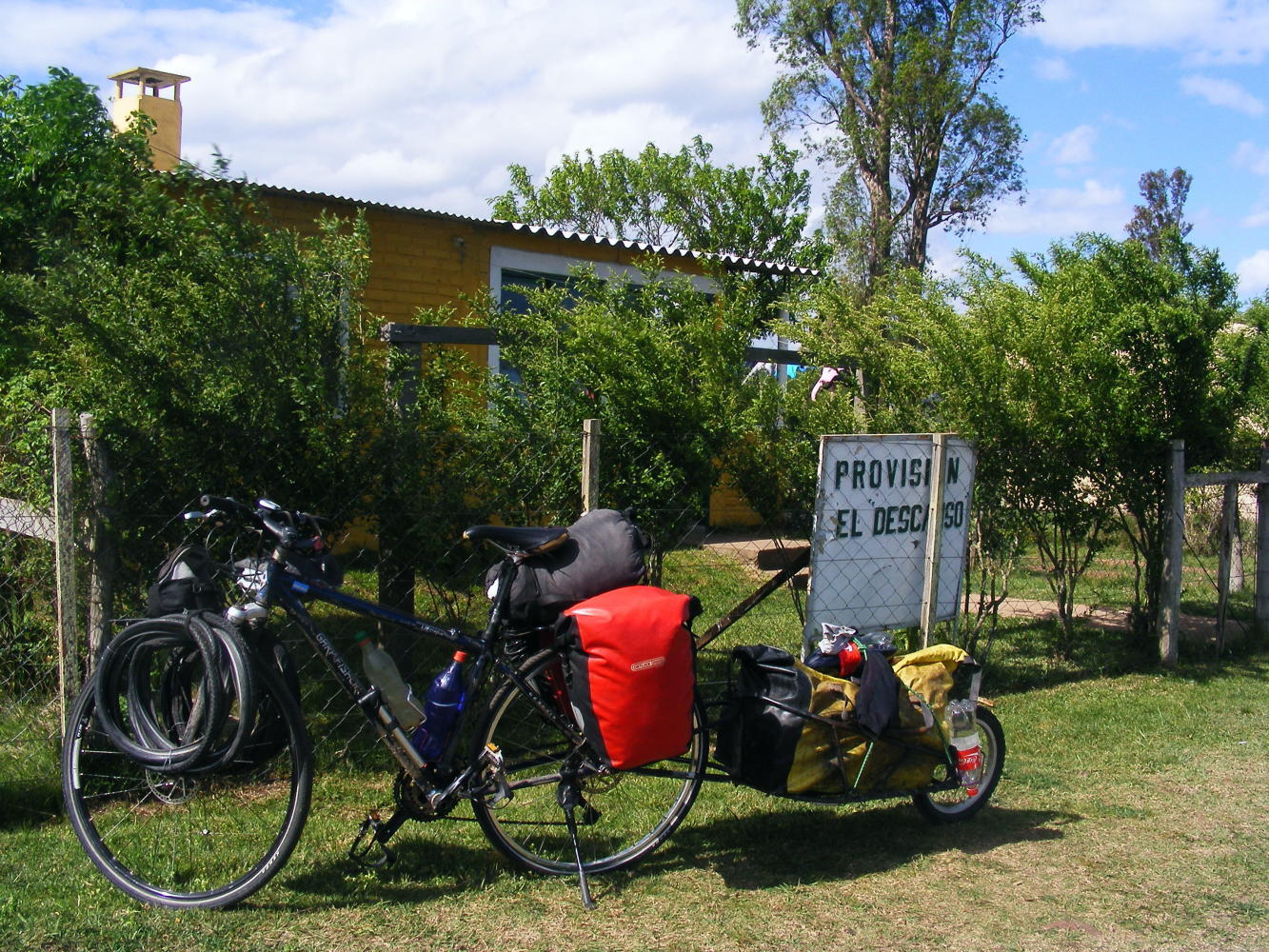 There was another village and the countryside ahead was more populated as now it was less than 60km to Salto. This of course made finding a place to camp that nuch harder. I past a small wood with a gate open so I got off and began to wheel the bike in but at that moment a kid was cycling along the road and I'm sure he would have told everybody. It didn't matter though as I first discoverad bee-hives in the wood, then chickens and then a few steps further I saw what I now suppected that the wood backed onto a farmhouse so I's out off there.