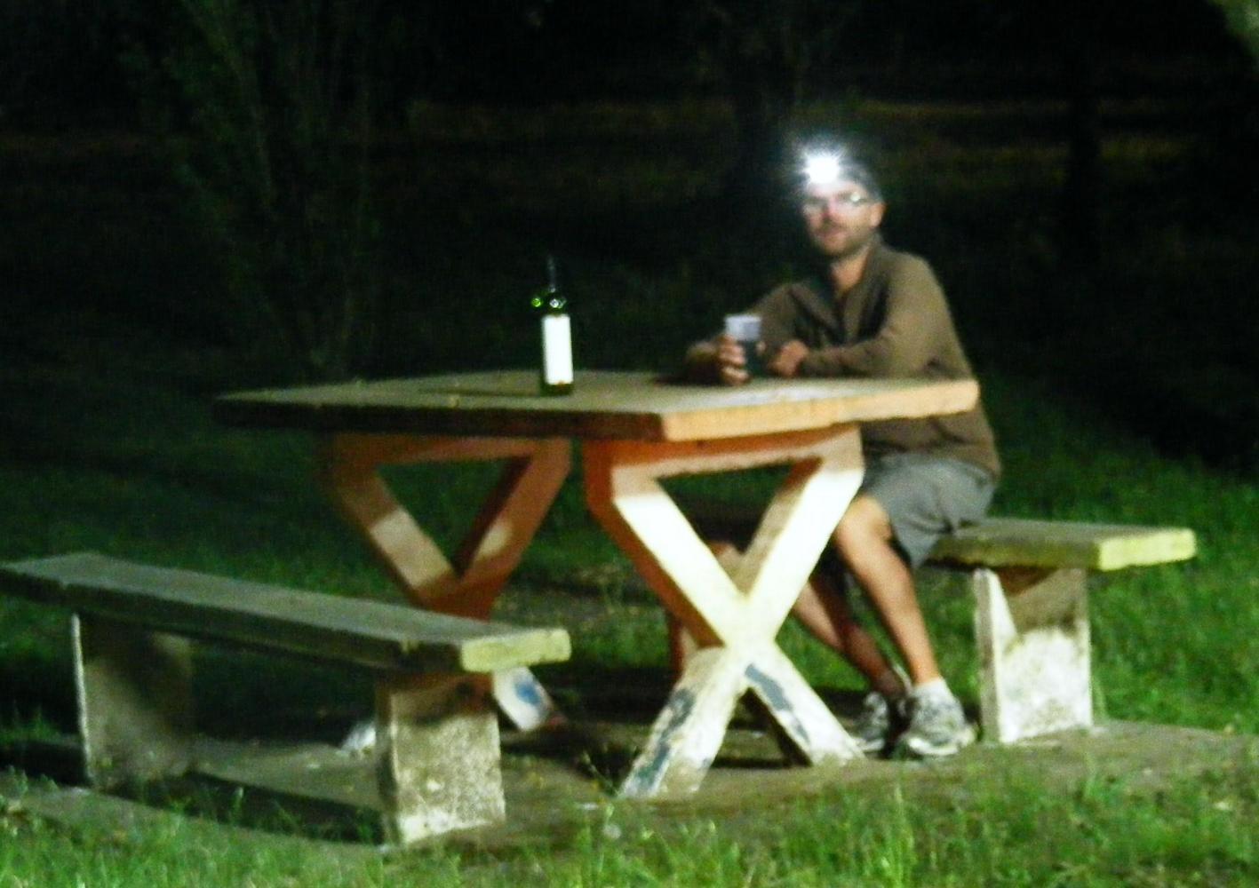 Good red wine many will agree is a wonderful drink and I for one don't have any trouble finishing off a whole bottle without falling over. So I was last night, my last in Uruguay, having a celebration by myself as Is the only person on the camping site. In a function room nearby a birthday party was going on. I know as at one stage the music and the chatter was interrupted by a sung 'cumple anos, feliz' happy birthday in Spanish. The person whom the party was for most have been my age as all night the music was eighties hits which brought back happy memories of my youth. I was patching an inner-tube while drinking my wine and soon was quite merry too singing openly a song from two decades earlier.