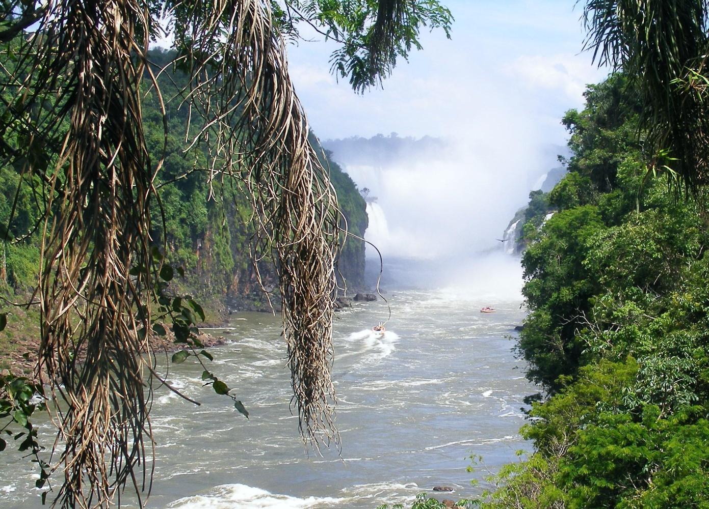 With the inflow of people from all over the world to see the waterfalls, the city of Puerto Iguazu is full of hotels and restaurants, infact the only industry here is tourism. The buses come constantly full of people and there are many excursion companies running trips to the waterfalls both on this side and across the nearby border on the Brazilian side of the river. Some of the companies do tours to Paraguay, a stone's throw away, as the location is the place where three countries meet, Argentina, Brazil and Paraguay.