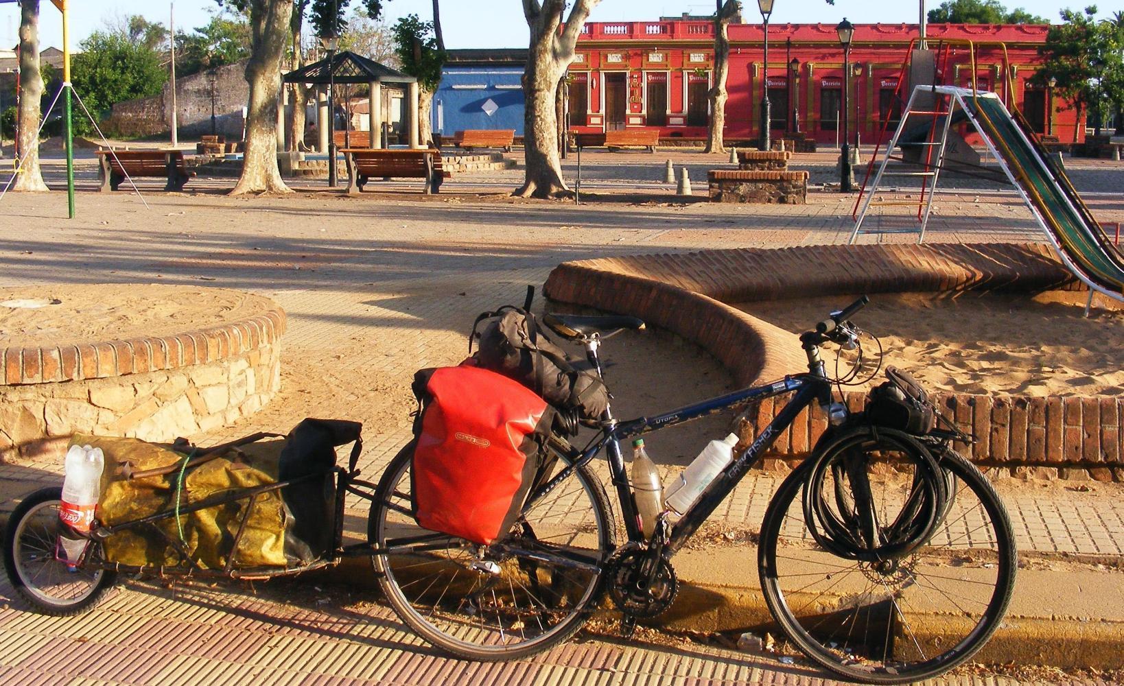 I arrive in Fray Bentos at 6.15 and cycle around a bit as the road ahead to the city-centre wasn't obvious. I stop at a fruit and veg shop where I buy the requirements for dinner. The woman inside told me there was camping by the riverbank when I asked. Out by the pavement, I put on my cycling-mitts, scarf and helmet quickly before the usual curios people gather around me. But I am too late. A curly haired middle age gentleman with a little mustache approaches and stands in a butch manner in front of the bike blocking me. He asks the usual questions and I answer then make to move the bike round him but he stands on in the way with a twinkle in his eye. His smiling eyes intensified as He asked where I was sleeping, so this time I successfully move the bike out and make a quick get away.