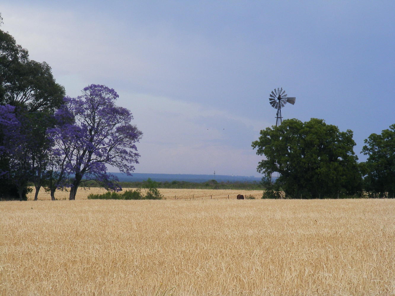 Shortly after setting off again, I turn South West on a secondary road, route 24. It was a road with few cars but quite a few trucks on the way to container ports on the river it would later transpire. As the day progressed, I past through gently rolling patchwork countryside of many water-pump windmills. The afternoon grew hazy then a dark bank of cloud enveloped the sky. Presently I saw the midnight blue shaft from sky to ground of a downpour off to the right. But it was behind me and so I had the benefit of it being cool while looking at dramatic cloud without the eventuality of getting soaked.