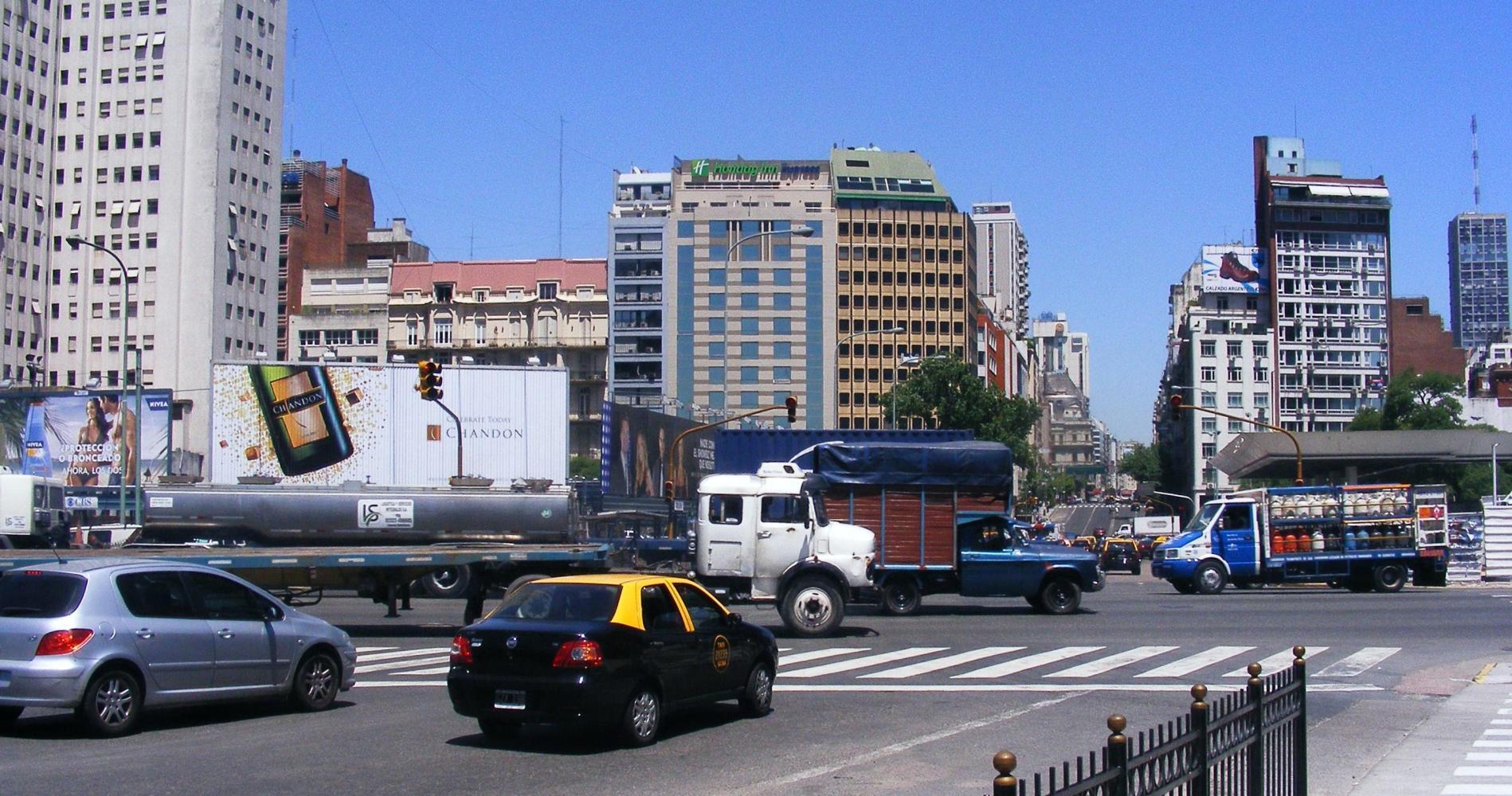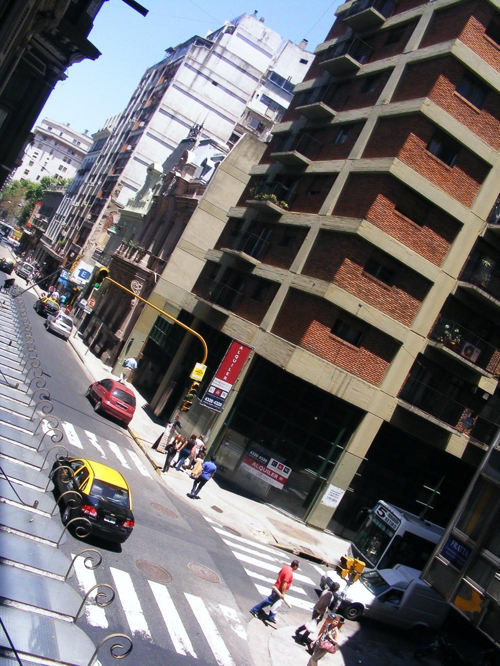 Leaving the terminal building I pushed the bike a bit until I became orientated, walking over a predestrian crossing until I was on old railway tracks then remembered where I was. I decide to push no more and cycle out in the street while the traffic is waiting at the lights. At the other side of the street I see another cyclist so crossover to his side and follow on. I see he's a cycle-courier. His company's name, Baires Motos tel 4575 7550, was on the red tee-shirt he wore. I followed behind up Avenida Cordoba where we have to stop at the intersection of Florida, the pedestrianized street where the man was green and the people flowed across the street. He was cycling slowly so I pass him then turn left along a narrow street closed to traffic called Suipacha, then right into Av Tucuman and soon I was cruising across the great 18 lane wide Avenue. It's good to be familiar with a city and not have to stop and look at a street map every few blocks. Futhermore, know where there are Hostels. I make to one on the corner of B Mitre and R Pene near Congeso, where I now sit and finish this page.