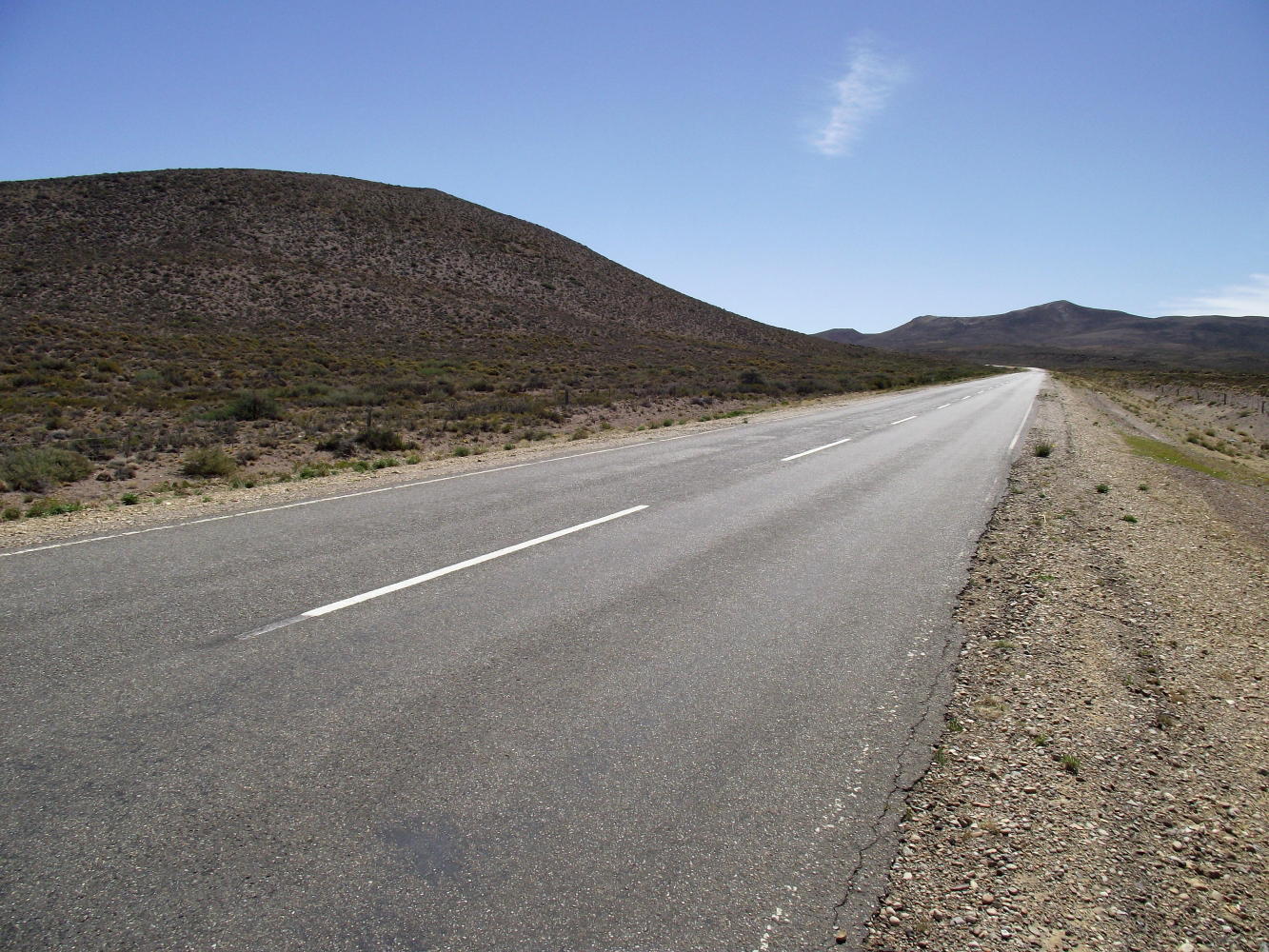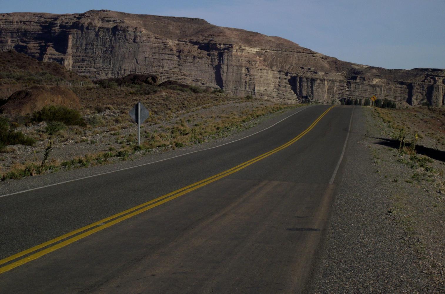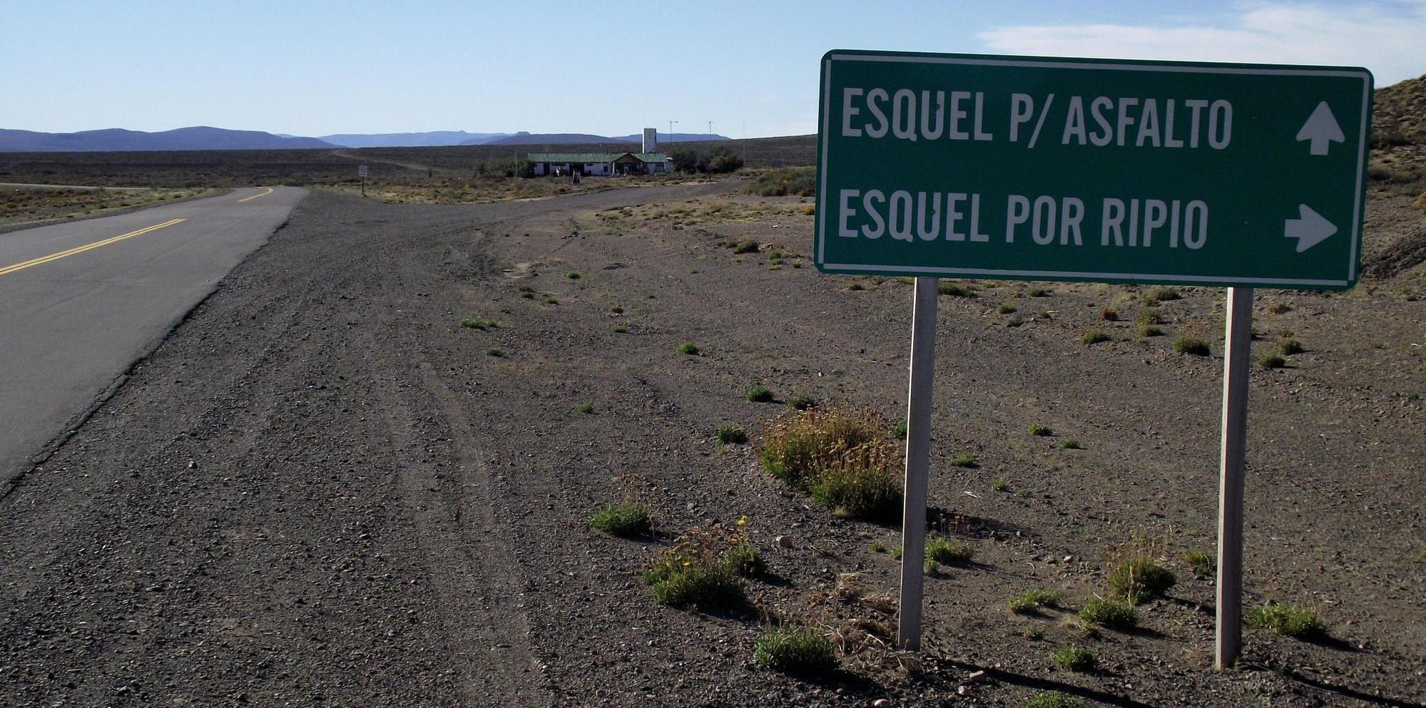 I was going to buy something for lunch at the shop but I spotted from the road a gleaming new comidor which wasn't there the last time I past through. It passed the pee test, the toilets smelled fresh and were spotless, so one can only suppose the kitchen is the same. The diner too was light and airy. I had Charasco, which is fried steak, and a big salad, and it filled me up for the rest of the day. A trucker and his helper at the other side of the room preoccupied playing with his mobile and I, were the only customers. The lady taking the orders and serving was beautiful, she had, like most of the people in this area those Asiatic features of native American people. I felt inhibited speaking with her as I's so filthy not having had a shower since leaving Trelew on Saturday, and with all the dust that was in the air yesterday which was still on my face and in my hair. But she wasn't just a pretty face, she knew I's travelling by bike and had not had the possibility of a wash in days.