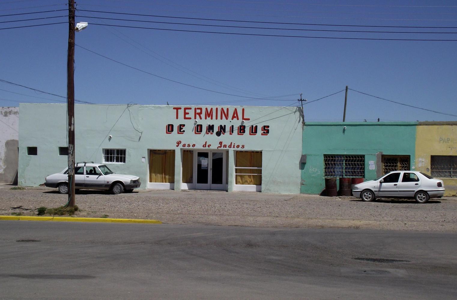 It is here, that the road sweeps down and passes by the riverbank one last time, as hereafter the river's coarse is from the North and the road continues West up a long climb to the beginning of a mountainous plateau and on finally cresting the hill the village of Paso de Indios spreads out before the eye looking like a un-thought-out collection of box-like structures which had been put there yesterday.